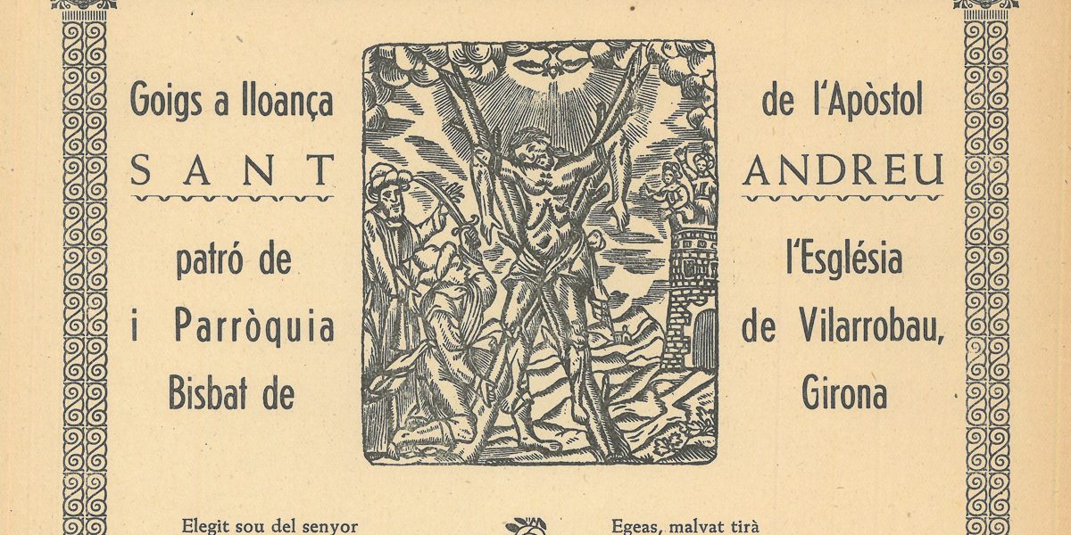 GOIGS A LLOANÇA DE L’APÒSTOL SANT ANDREU PATRÓ DE L’ESGLÉSIA I PARRÒQUIA DE VILARROBAU, BISBAT DE GIRONA