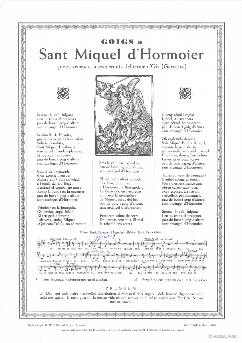 GOIGS A SANT MIQUEL D’HORTMOIER, QUE ES VENERA A LA SEVA ERMITA DEL TERME D’OIX (GARROTXA)