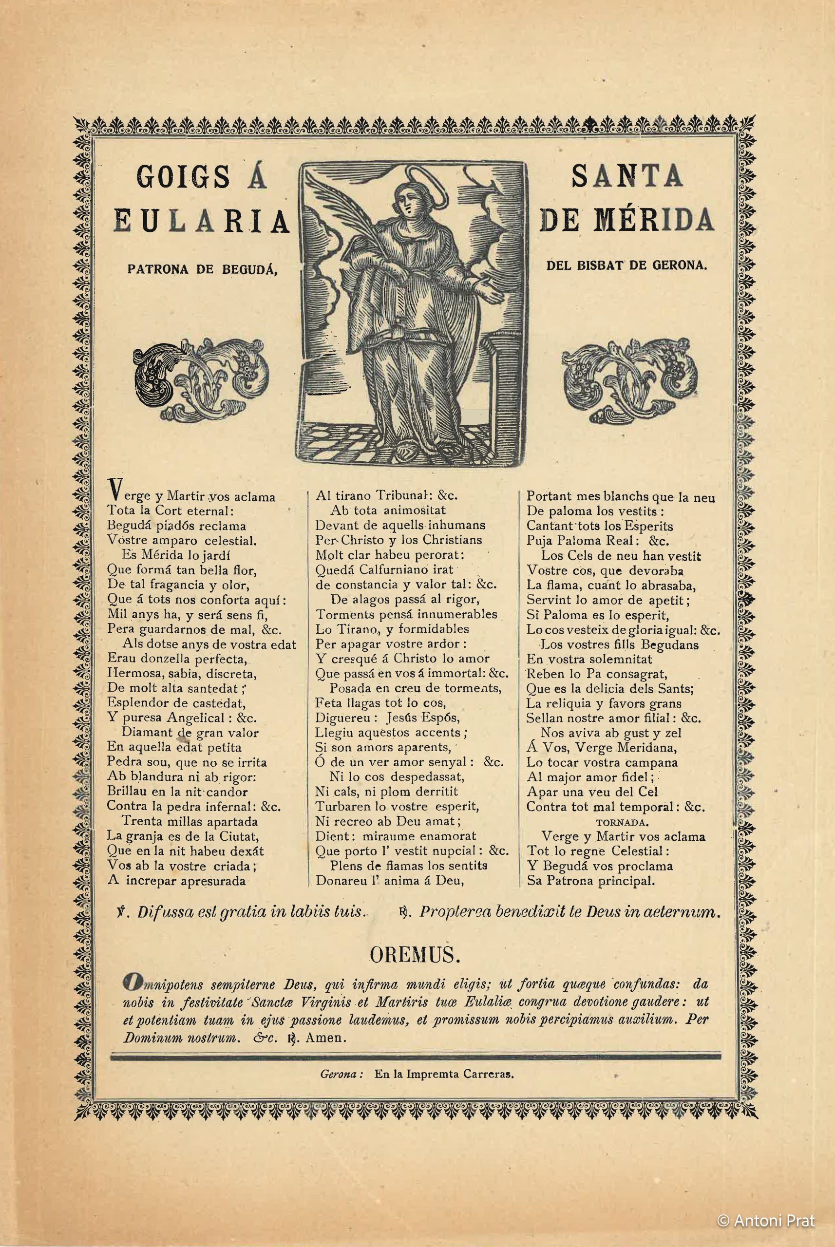 GOIGS Á SANTA EULARIA DE MÉRIDA PATRONA DE BEGUDÁ, DEL BISBAT DE GERONA