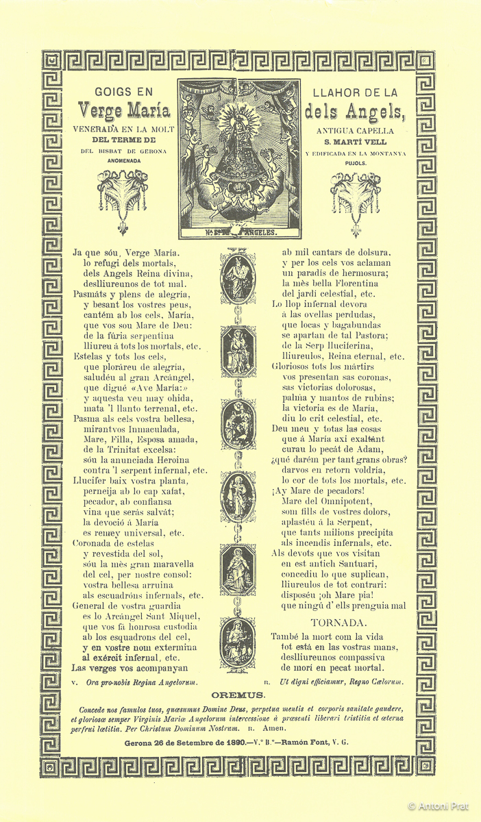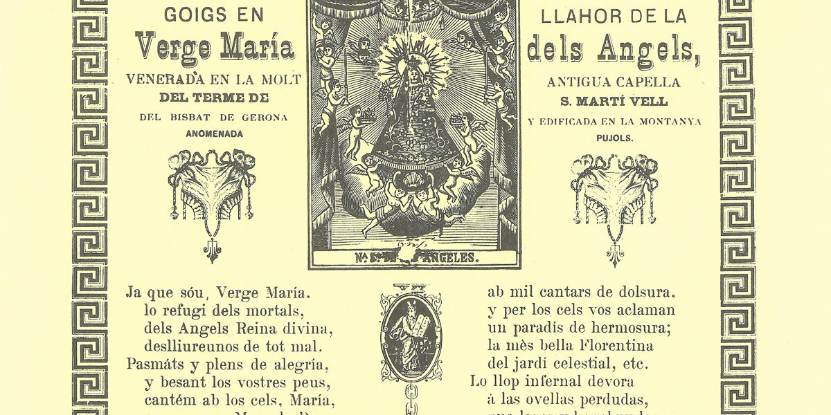 GOIGS EN LLAHOR DE LA VERGE MARÍA DELS ANGELS, VENERADA EN LA MOLT ANTIGUA CAPELLA DEL TERME DE S. MARTÍ VELL DEL BISBAT DE GERONA Y EDIFICADA EN LA MONTANYA ANOMENADA PUJOLS