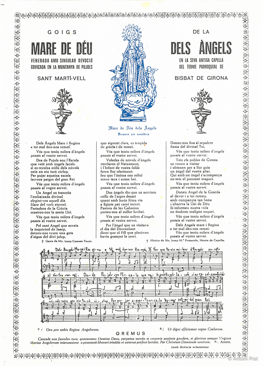GOIGS DE LA MARE DE DÉU DELS ÀNGELS VENERADA AMB SINGULAR DEVOCIÓ EN LA SEVA ANTIGA CAPELLA EDIFICADA EN LA MUNTANYA DE PUJOLS DEL TERME PARROQUIAL DE SANT MARTÍ-VELL BISBAT DE GIRONA