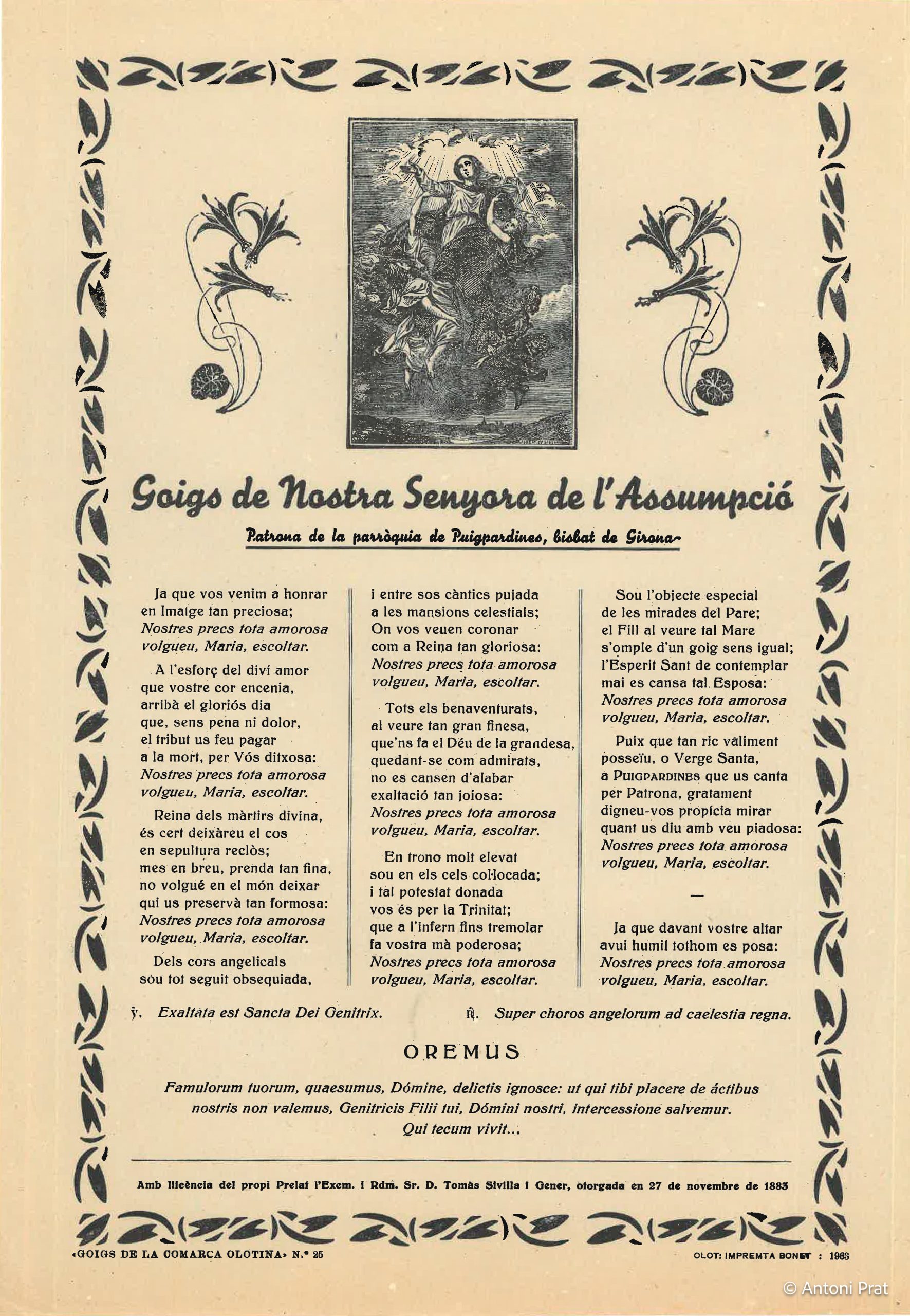 GOIGS DE NOSTRA SENYORA DE L’ASSUMPCIÓ PATRONA DE LA PARRÒQUIA DE PUIGPARDINES, BISBAT DE GIRONA