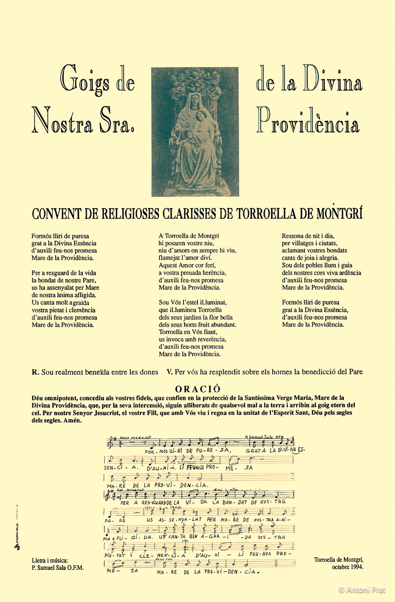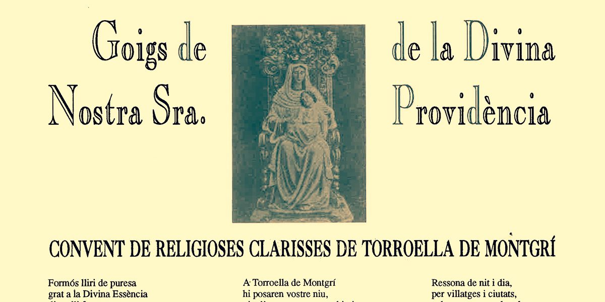 GOIGS DE NOSTRA SRA. DE LA DIVINA PROVIDÈNCIA, CONVENT DE RELIGIOSES CLARISSES DE TORROELLA DE MONTGRÍ