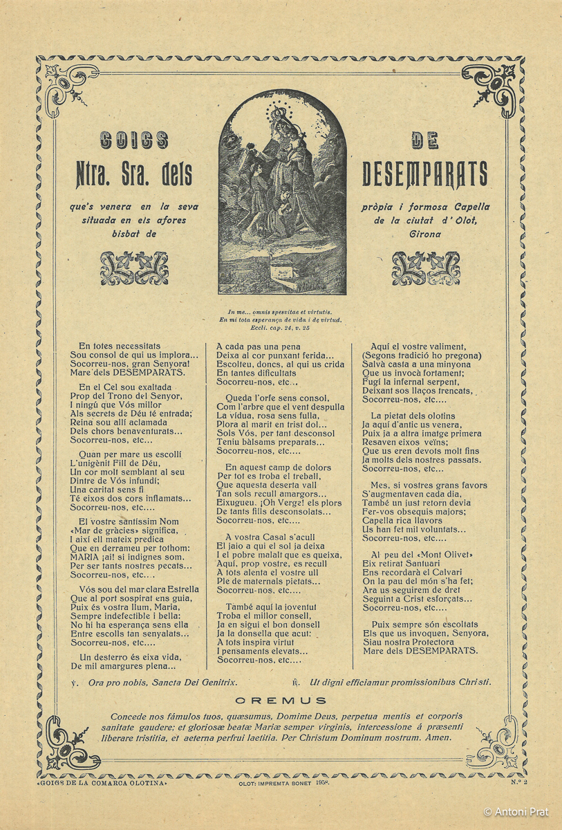 GOIGS DE NTRA. SRA. DELS DESEMPARATS QUE’S VENERA EN LA SEVA PRÒPIA I FORMOSA CAPELLA SITUADA EN ELS AFORES DE LA CIUTAT D’OLOT, BISBAT DE GIRONA