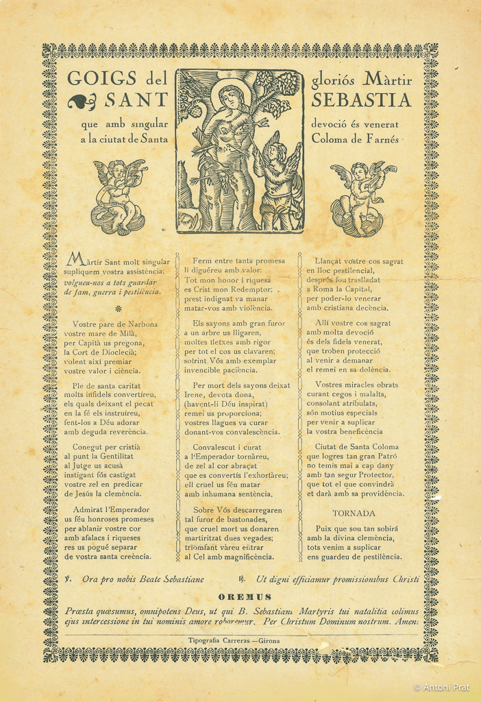 GOIGS DEL GLORIÓS MÀRTIR SANT SEBASTIA QUE AMB SINGULAR DEVOCIÓ ÉS VENERAT A LA CIUTAT DE SANTA COLOMA DE FARNÉS