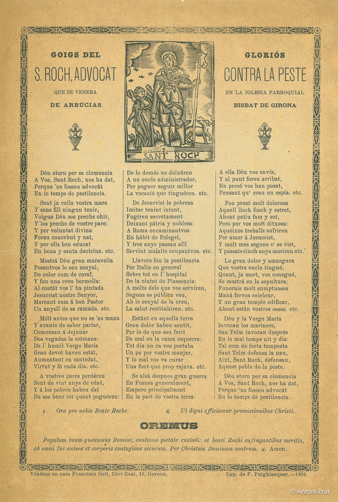GOIGS DEL GLORIÓS S. ROCH, ADVOCAT CONTRA LA PESTE QUE SE VENERA EN LA IGLESIA PARROQUIAL DE ARBÚCIAS BISBAT DE GIRONA