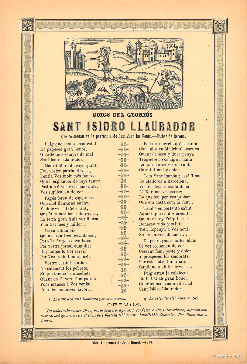 GOIGS DEL GLORIÓS SANT ISIDRO LLAURADOR QUE SE CANTAN EN LA PARROQUIA DE SANT JOAN LES FONTS – BISBAT DE GERONA