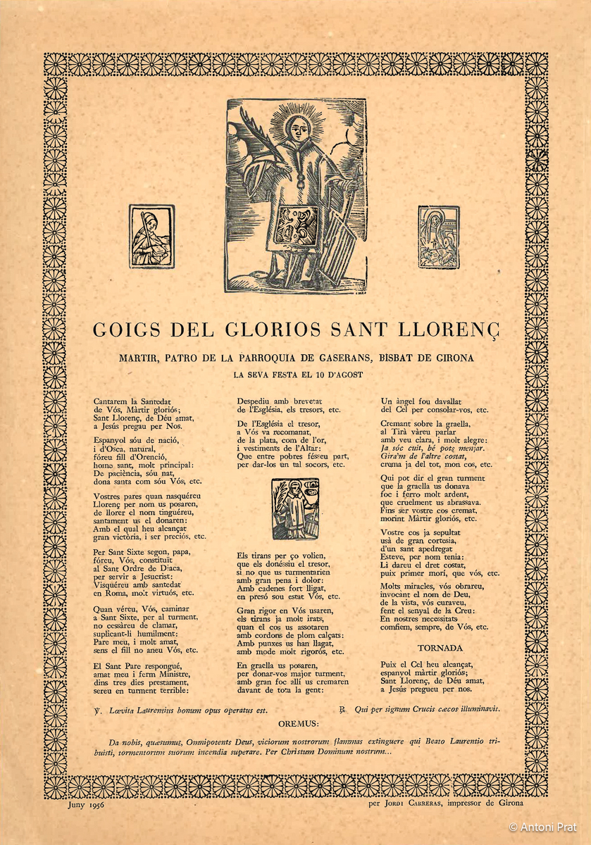 GOIGS DEL GLORIOS SANT LLORENÇ MARTIR, PATRO DE LA PARROQUIA DE GASERANS, BISBAT DE GIRONA