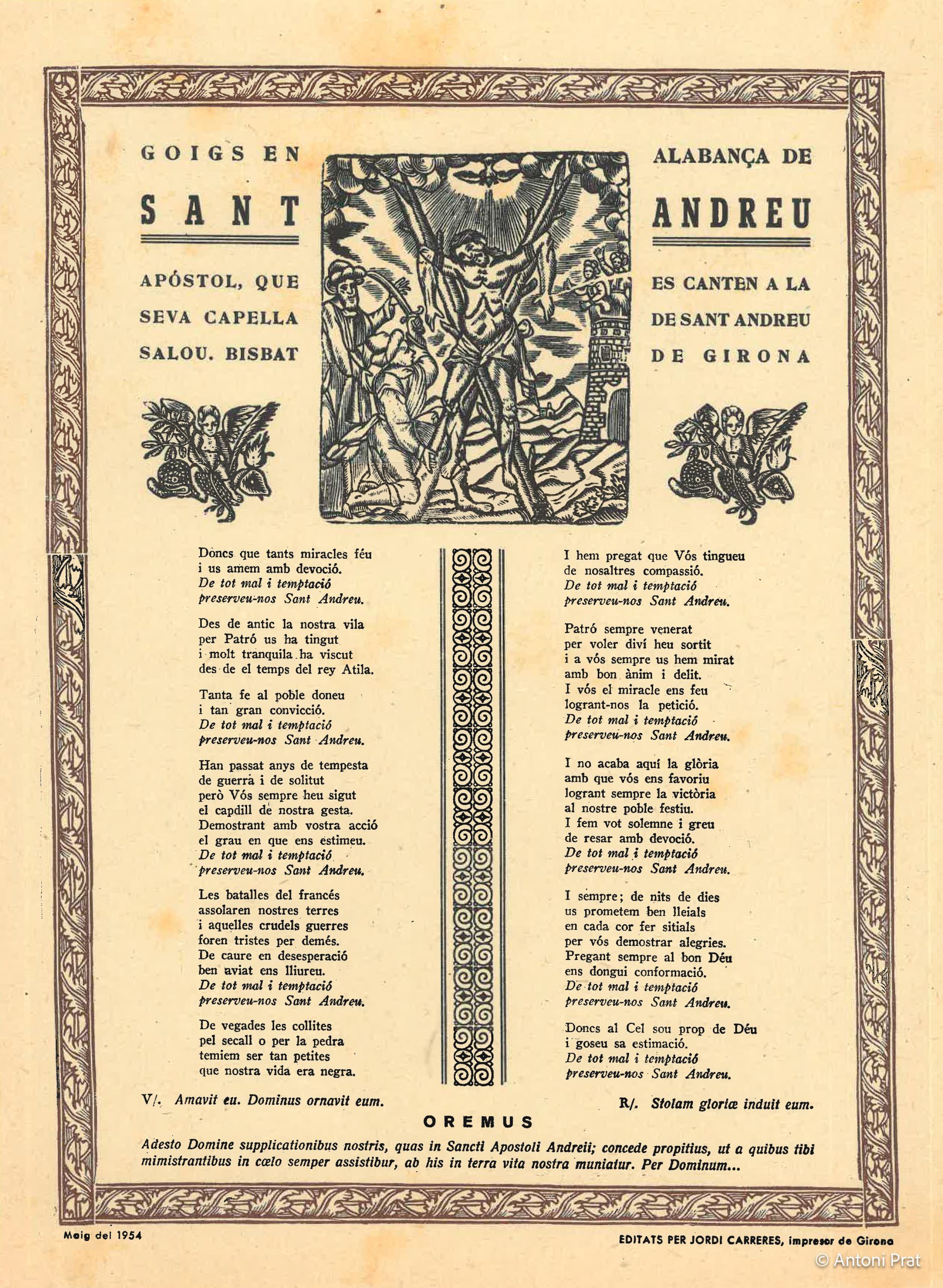 GOIGS EN ALABANÇA DE SANT ANDREU APÓSTOL, QUE ES CANTEN A LA SEVA CAPELLA DE SANT ANDREU SALOU, BISBAT DE GIRONA