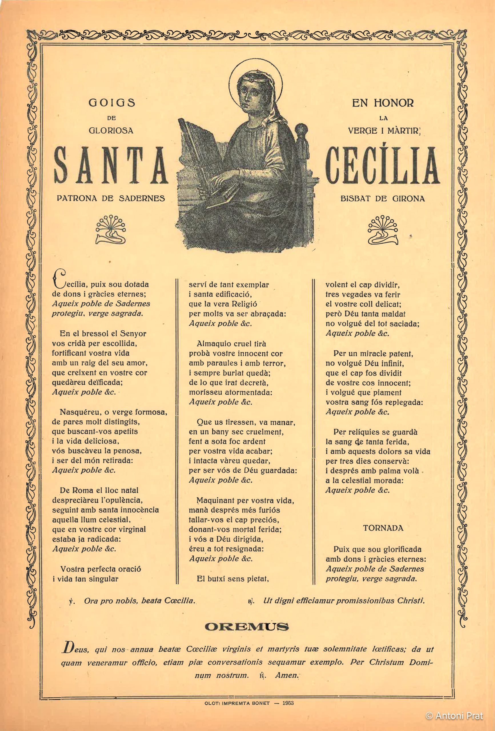 GOIGS EN HONOR DE LA GLORIOSA VERGE I MÀRTIR SANTA CECÍLIA PATRONA DE SADERNES BISBAT DE GIRONA