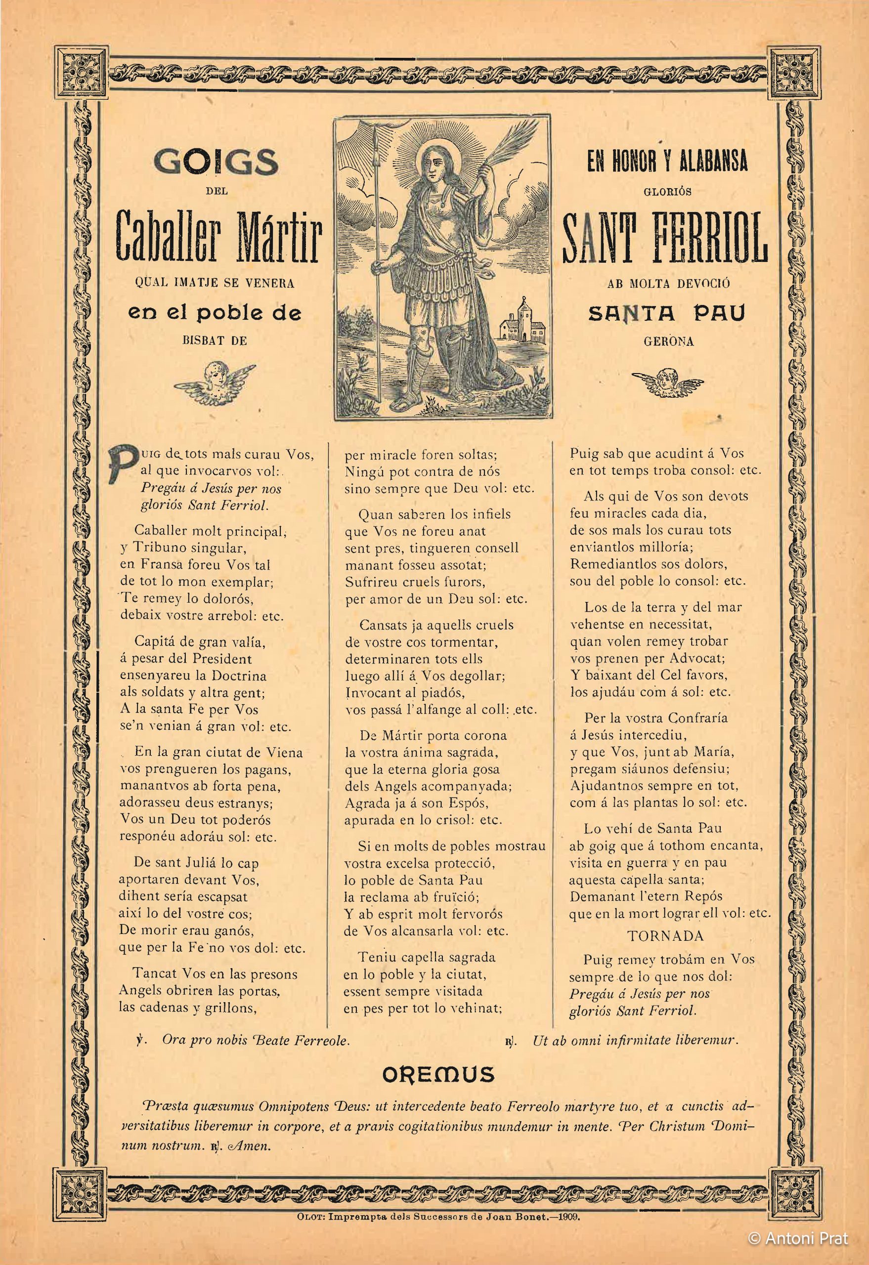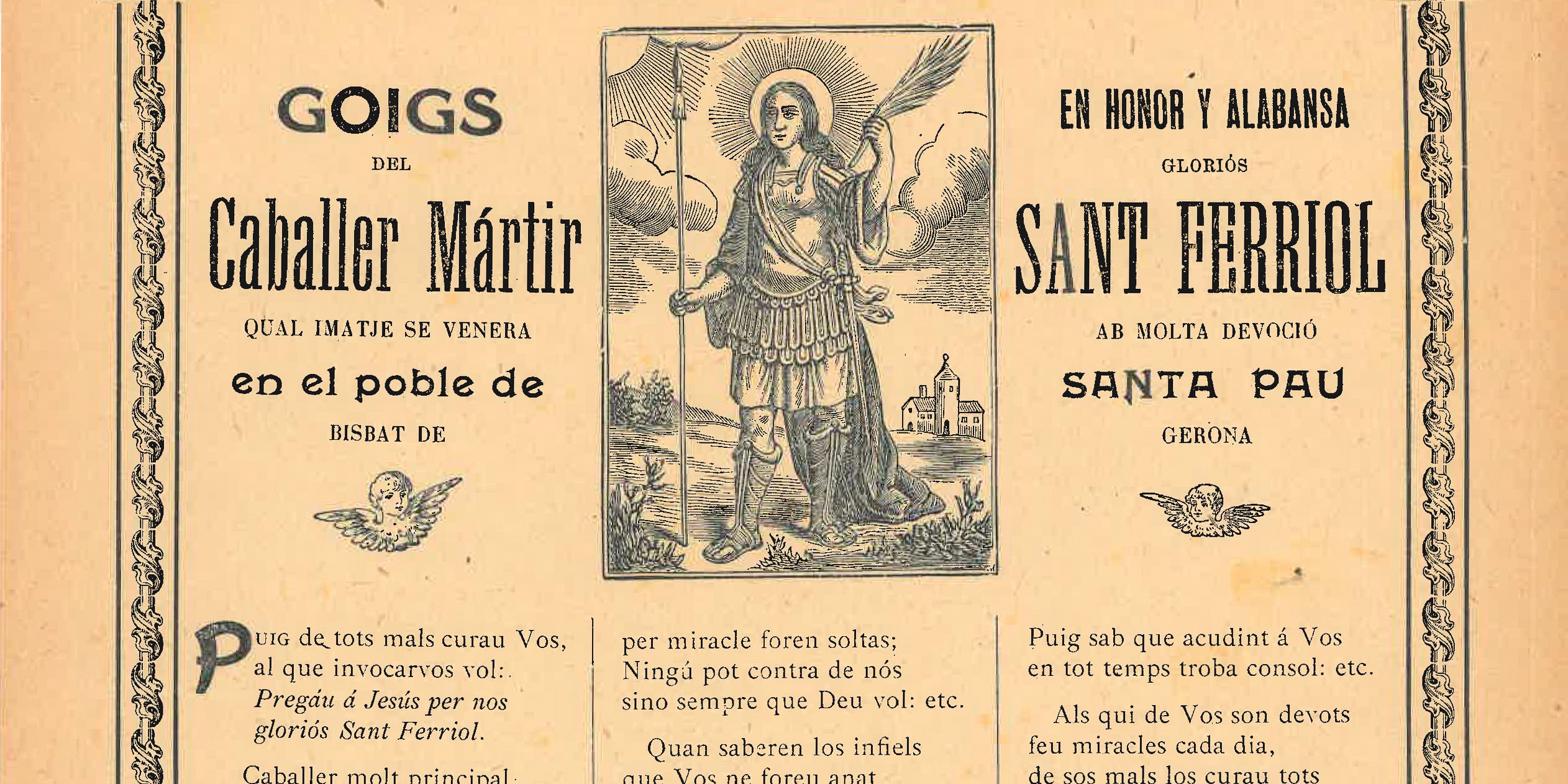 GOIGS EN HONOR Y ALABANSA DEL GLORIÓS CABALLER MÁRTIR SANT FERRIOL, QUAL IMATJE SE VENERA AB MOLTA DEVOCIÓ EN EL POBLE DE SANTA PAU BISBAT DE GERONA