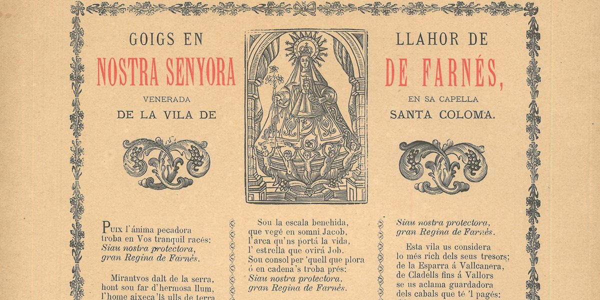 GOIGS EN LLAHOR DE NOSTRA SENYORA DE FARNÉS, VENERADA EN SA CAPELLA DE LA VILA DE SANTA COLOMA