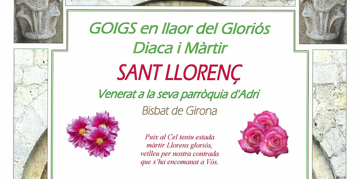 GOIGS EN LLAOR DEL GLORIÓS DIACA I MÀRTIR SANT LLORENÇ, VENERAT A LA SEVA PARRÒQUIA D’ADRI BISBAT DE GIRONA