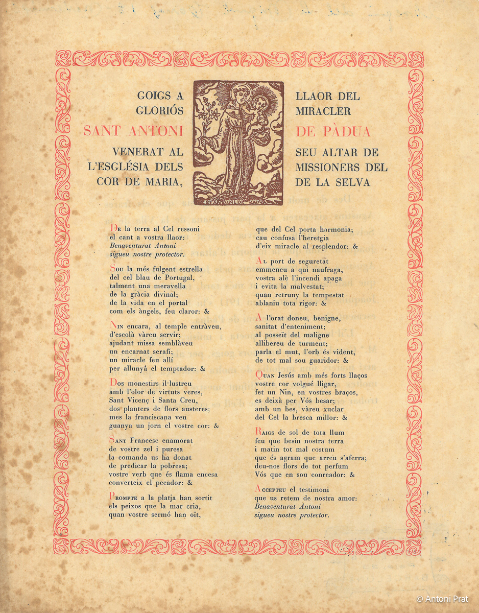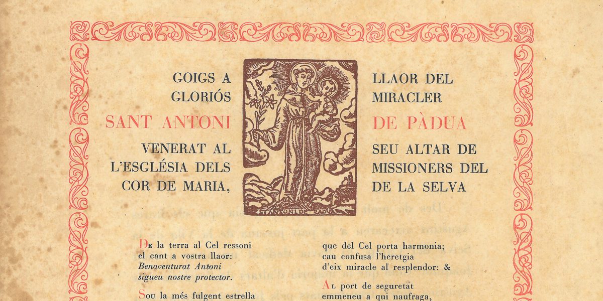 GOIGS A LLAOR DEL GLORIÓS MIRACLER SANT ANTONI DE PÀDUA VENERAT AL SEU ALTAR DE L’ESGLÉSIA DELS MISSIONERS DEL COR DE MARIA, DE LA SELVA