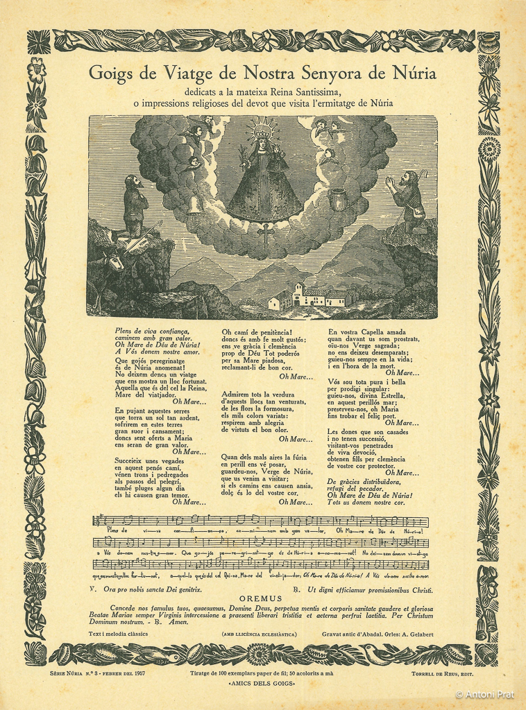 GOIGS DE VIATGE DE NOSTRA SENYORA DE NÚRIA DEDICATS A LA MATEIXA REINA SANTÍSSIMA, O IMPRESSIONS RELIGIOSES DEL DEVOT QUE VISITA L’ERMITATGE DE NÚRIA