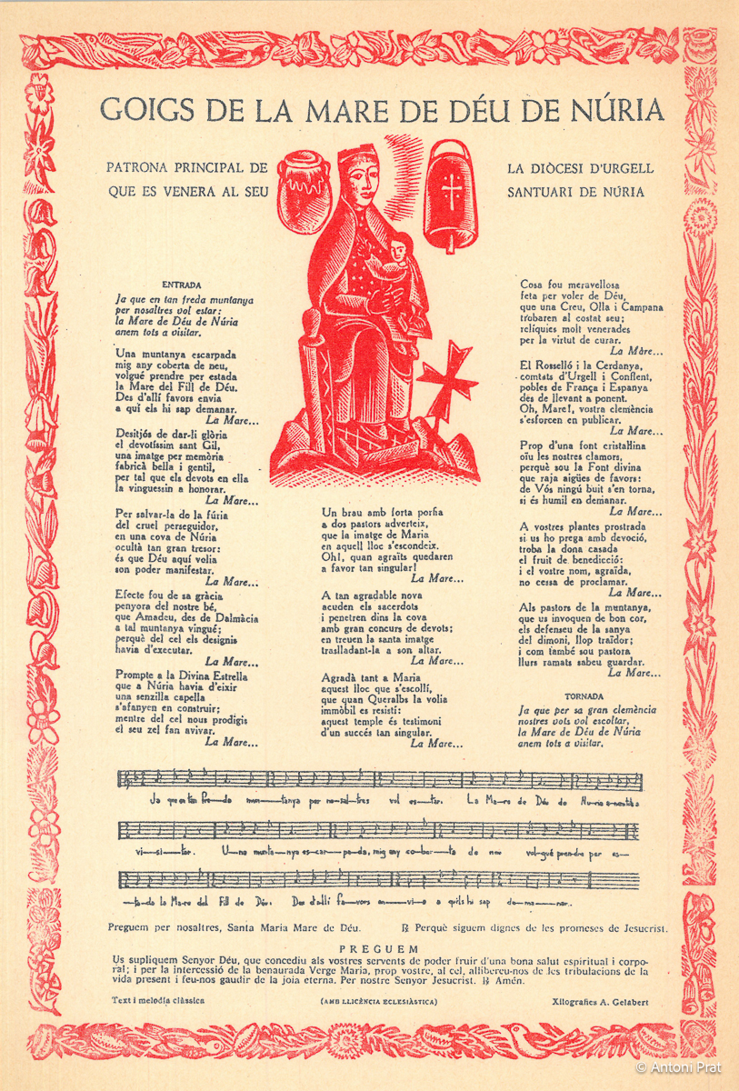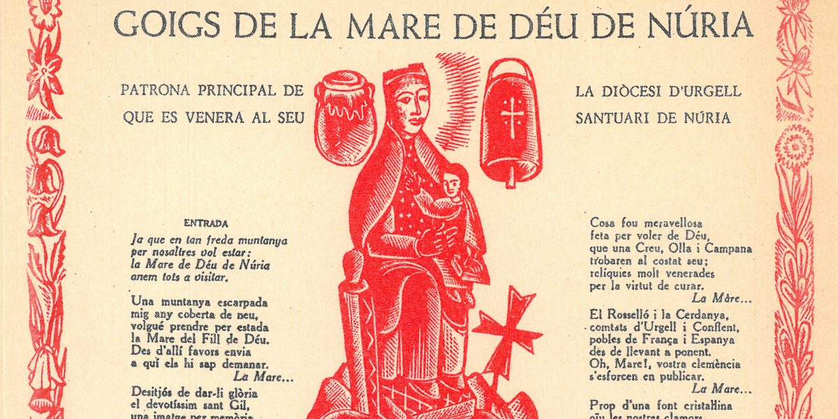 GOIGS DE LA MARE DE DÉU DE NÚRIA, PATRONA PRINCIPAL DE LA DIÒCESI D’URGELL QUE ES VENERA AL SEU SANTUARI DE NÚRIA