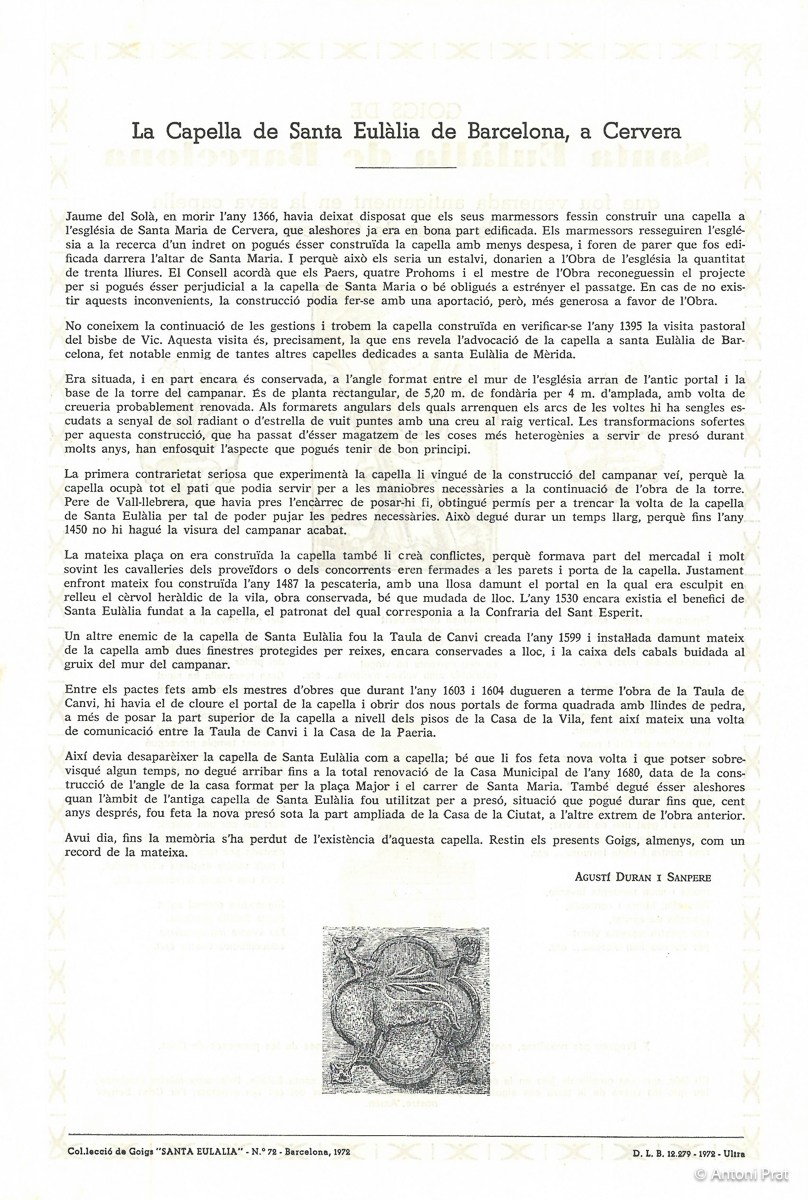 Col·lecció de Goigs “Santa Eulalia” – N.º 72 – Barcelona