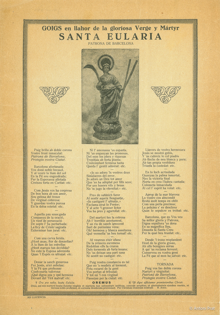 GOIGS EN LLAHOR DE LA GLORIOSA VERGE Y MÁRTYR SANTA EULARIA, PATRONA DE BARCELONA