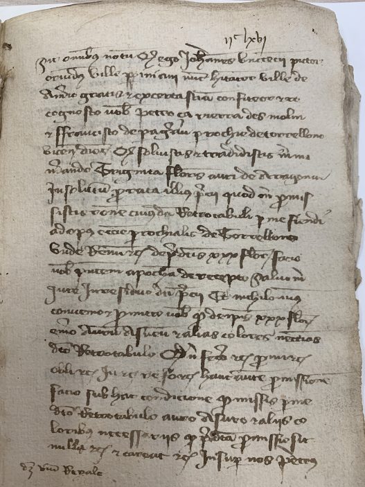 Al concretar que qui fa el pagament a compte del treball són els Srs. Pere sa Riera del Molí i Francesc de Peragrau. Al meu entendre, aquests noms -amb les corresponents modificacions mantingudes al llarg dels segles- van lligats a dues cases de pagès encara existents a Sant Pere de Torelló: el Molí de la Riera i Pigrau.