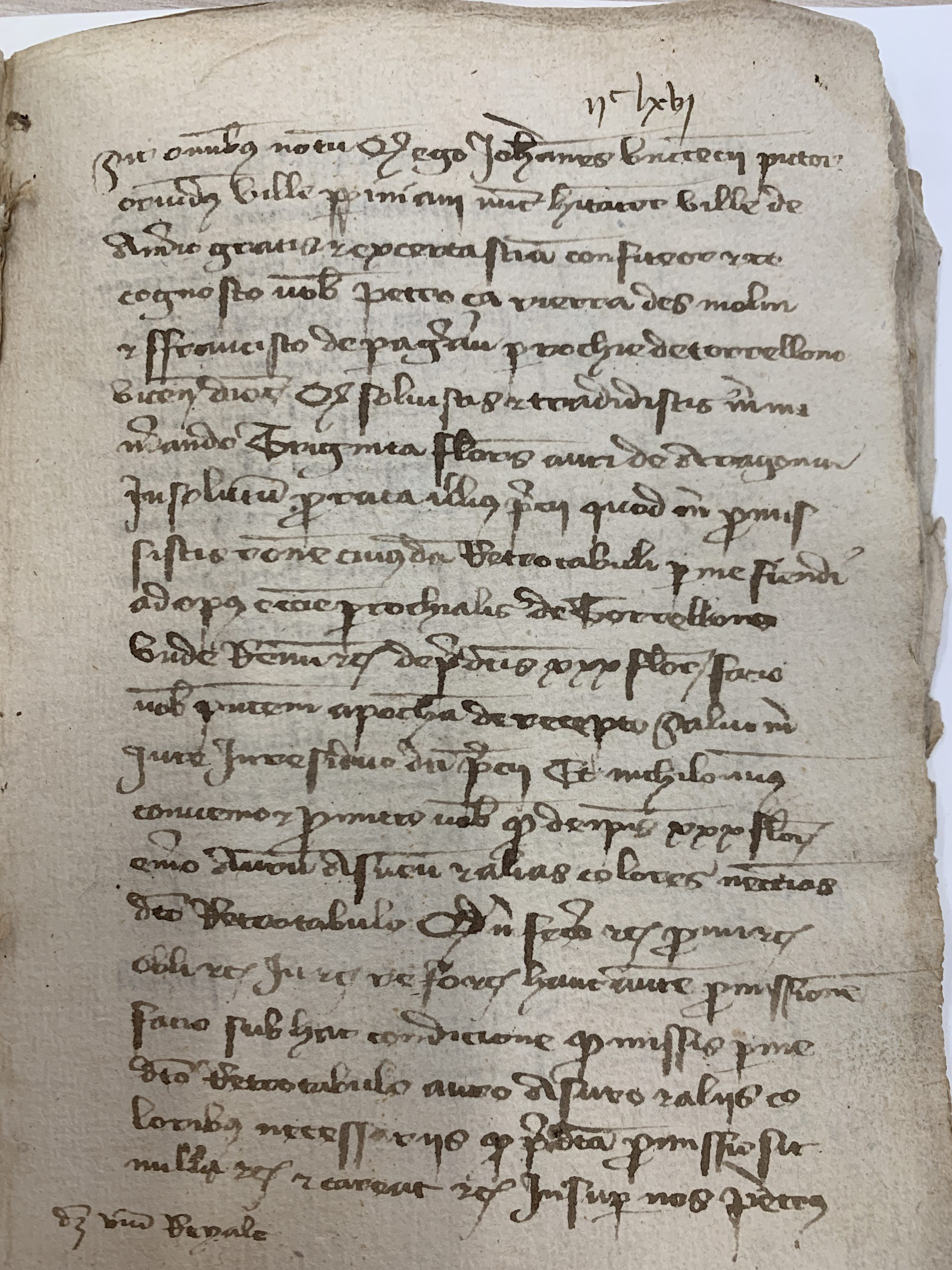 Buscant informació relacionada, la casualitat m’ha fet trobar un informe tècnic de l’any 2017 elaborat pel Departament de Cultura de la Generalitat de Catalunya amb origen a l’Arxiu Històric de Girona i signat per Silvia Mancebo on es fa referència a la localització a l’AHGirona d’una àpoca, o carta de pagament, de l’any 1443 feta a la Notaria d’Amer on el pintor Joan Vicenç, natural de la vila de Perpinyà, declarava que havia cobrat de Pere sa Riera del Molí i Francesc de Peragrau, veïns de Torelló, 30 florins d’or d’Aragó com a part per pintar un retaule per l’església parroquial de Torelló.