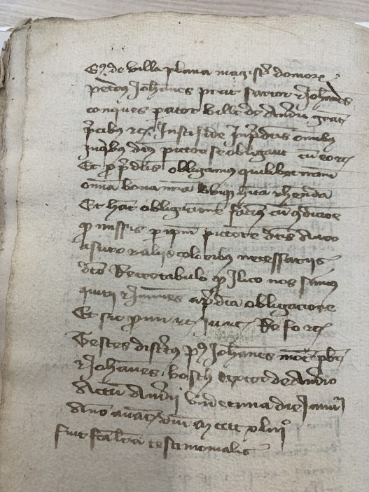 Tal com em va explicar la mateixa Silvia Mancebo el dia que vaig anar a l’Arxiu Històric de Girona a veure el document físic del 1443, la llàstima és que aquest només fa referència al comprovant d’un pagament a compte del retaule. Si existís i es pogués localitzar el document amb l’encàrrec del retaule, molt probablement podíem saber amb detall el contingut de les seves parts i comparar-lo amb el compartiment que ha arribat als nostres dies.