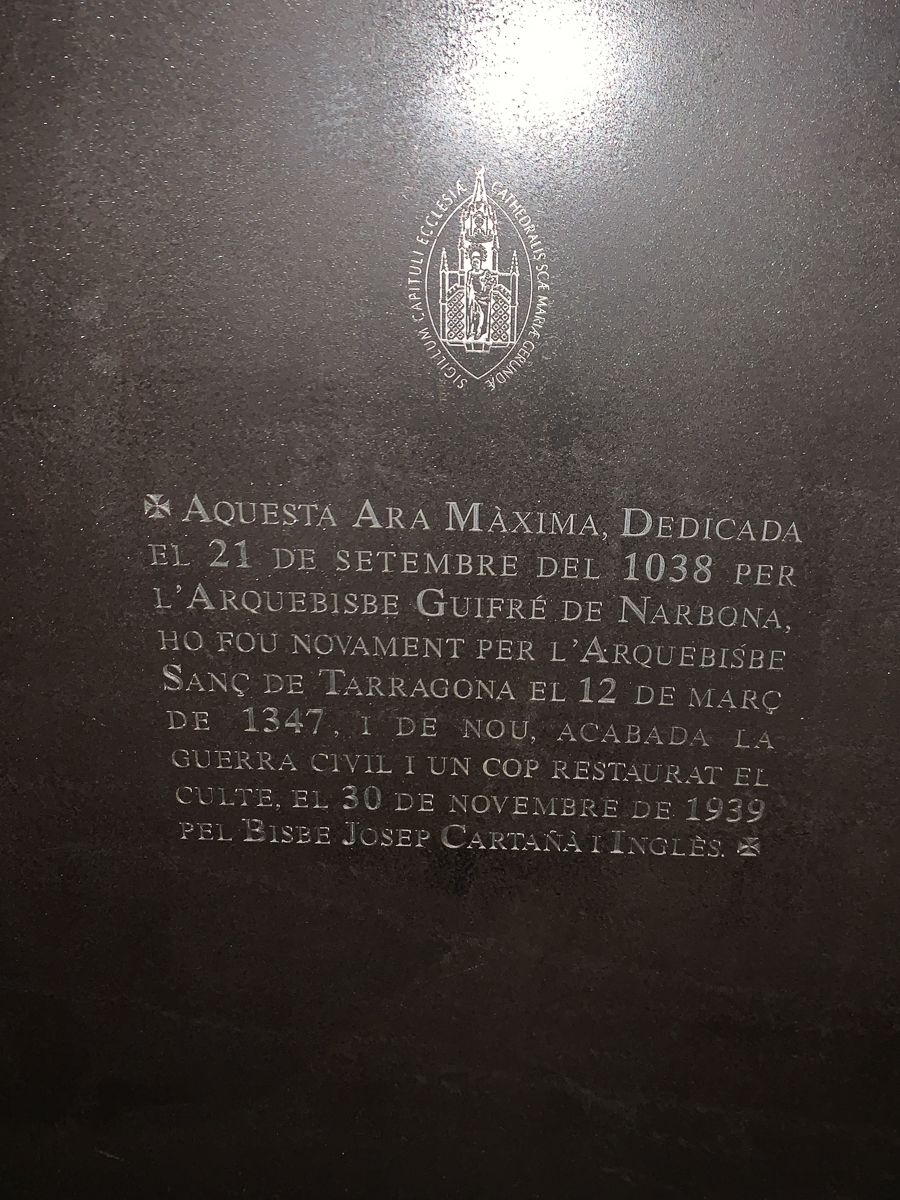 Segons la historiografia és l’ara que durant l’època del bisbe Pere Roger, el 1038 va consagrar per primera vegada l’arquebisbe de Narbona Guifré i per segona vegada l’arquebisbe Sanç de Tarragona, el 1347.