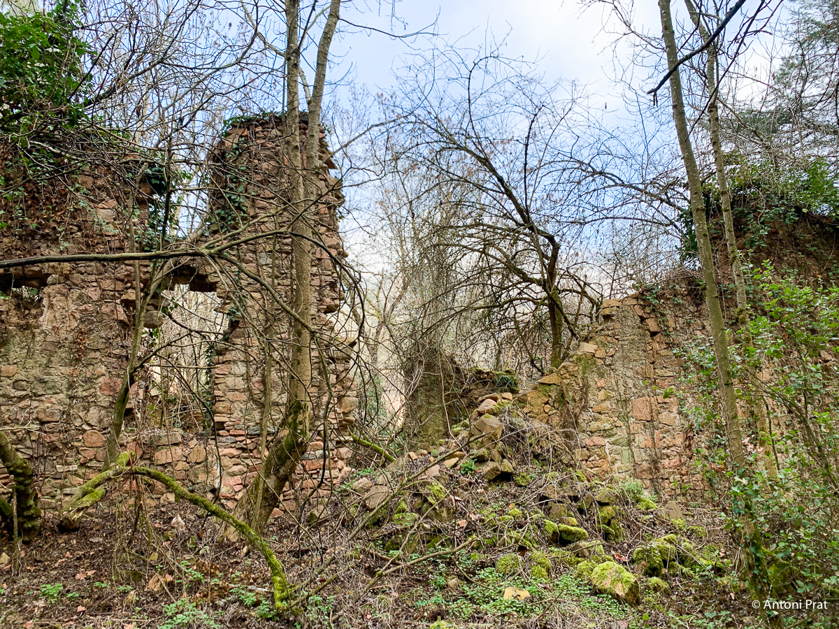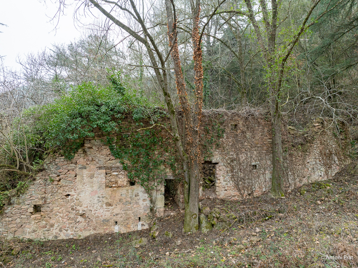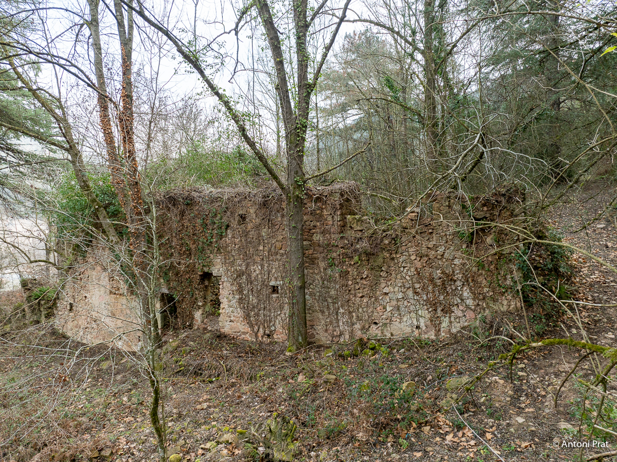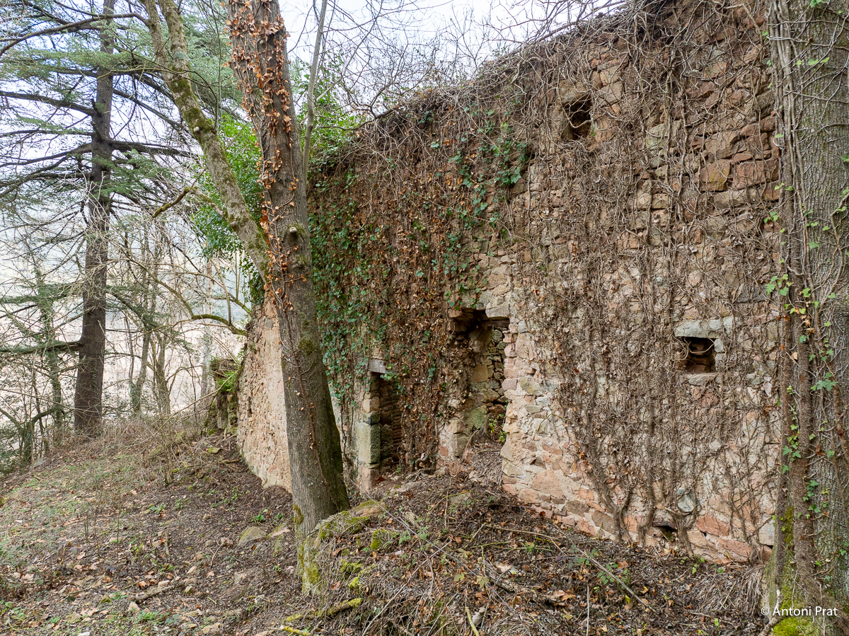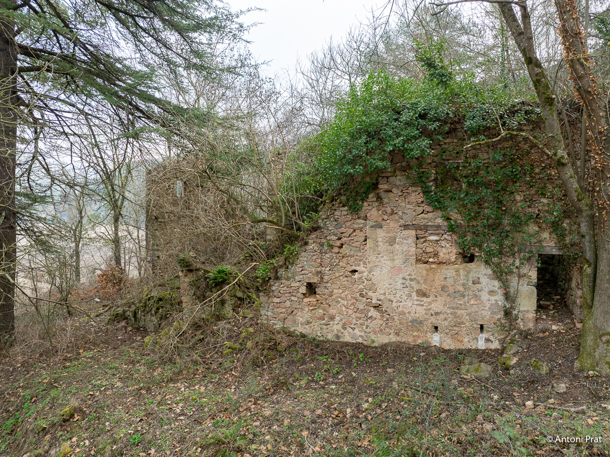 Situat a la dreta del Ter, vora el Baldà. Les restes de la casa es troben molt a prop de la cota màxima de les aigües, però mai arriben a quedar-ne afectades. Era un mas de grans dimensions format per dues ales perpendiculars, una de 15 x 11 m i l’altra de 21 x 5 m, que s’unien a l’extrem de ponent.