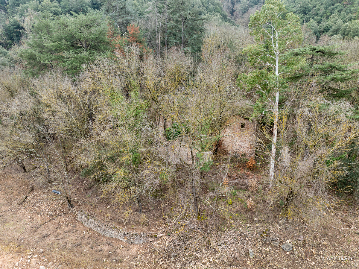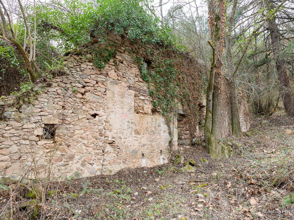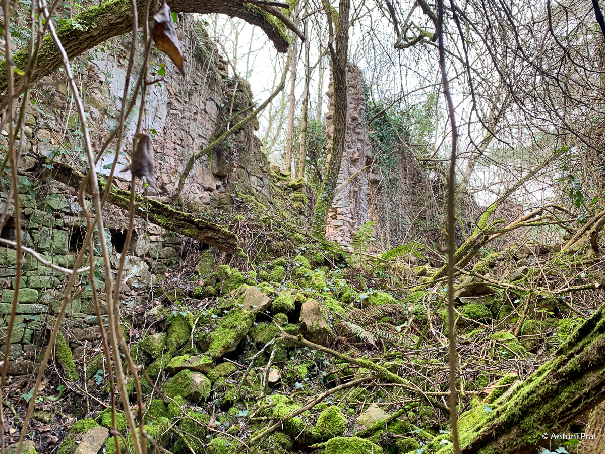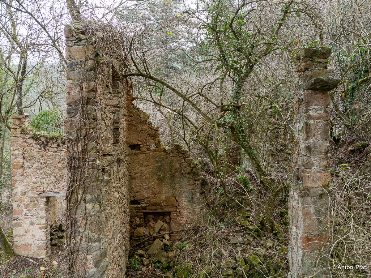 Situat a la dreta del Ter, vora el Baldà. Les restes de la casa es troben molt a prop de la cota màxima de les aigües, però mai arriben a quedar-ne afectades. Era un mas de grans dimensions format per dues ales perpendiculars, una de 15 x 11 m i l’altra de 21 x 5 m, que s’unien a l’extrem de ponent.