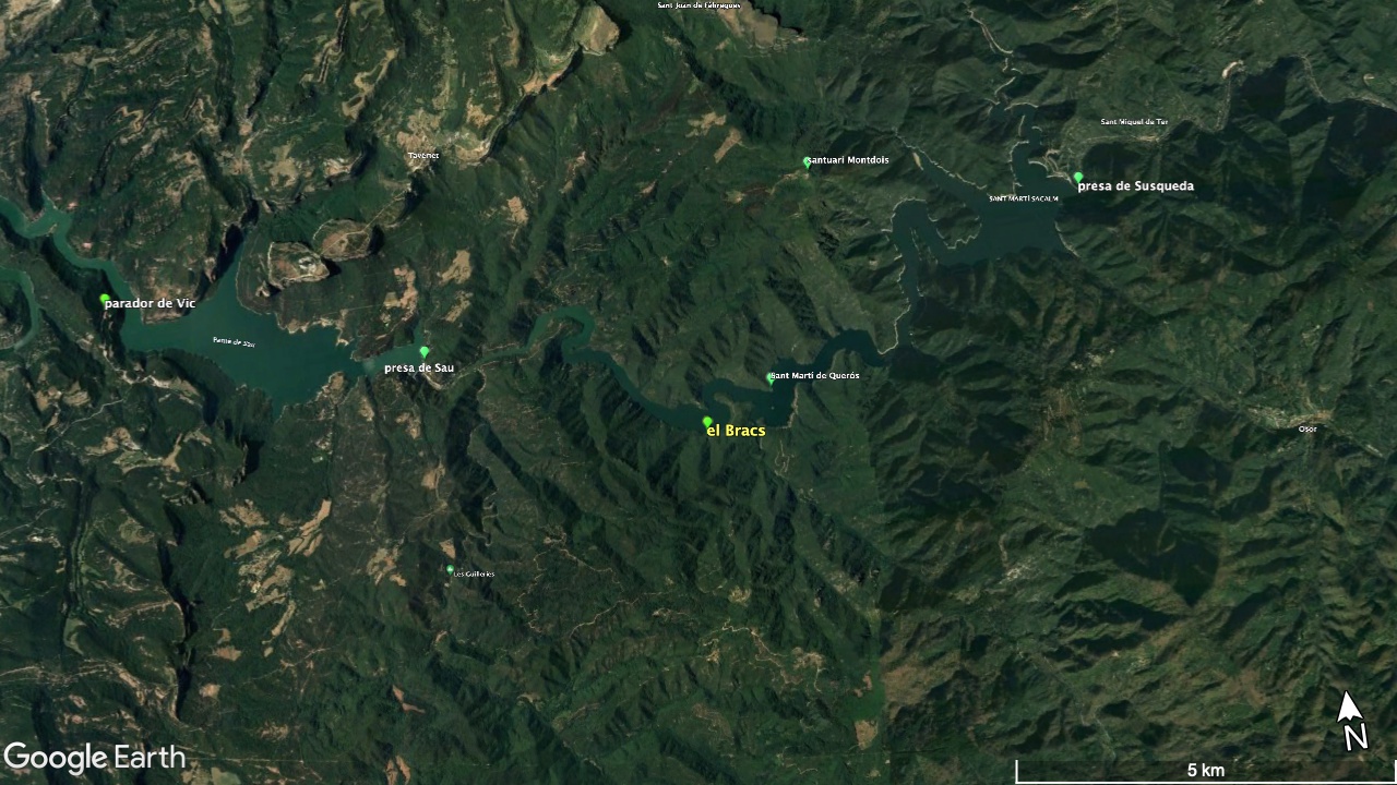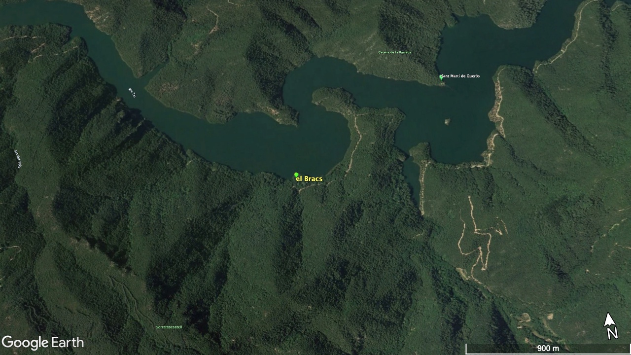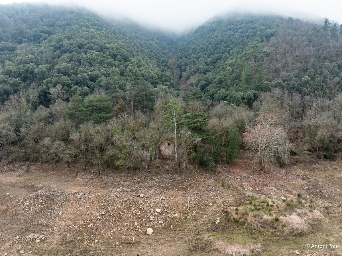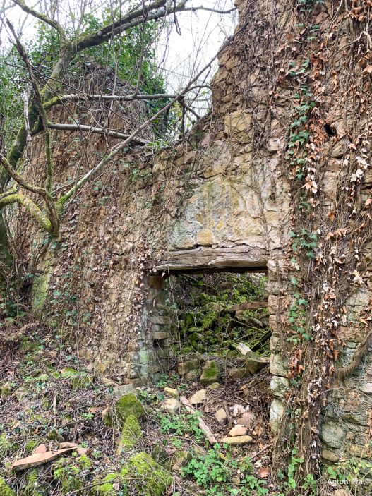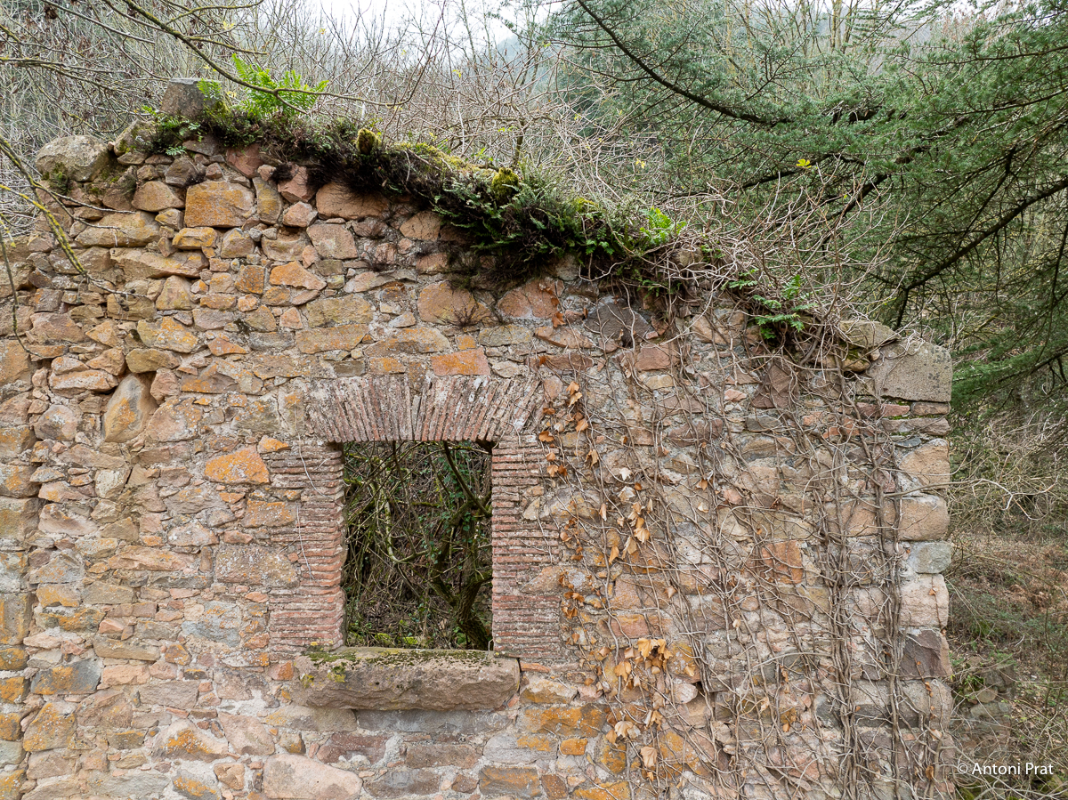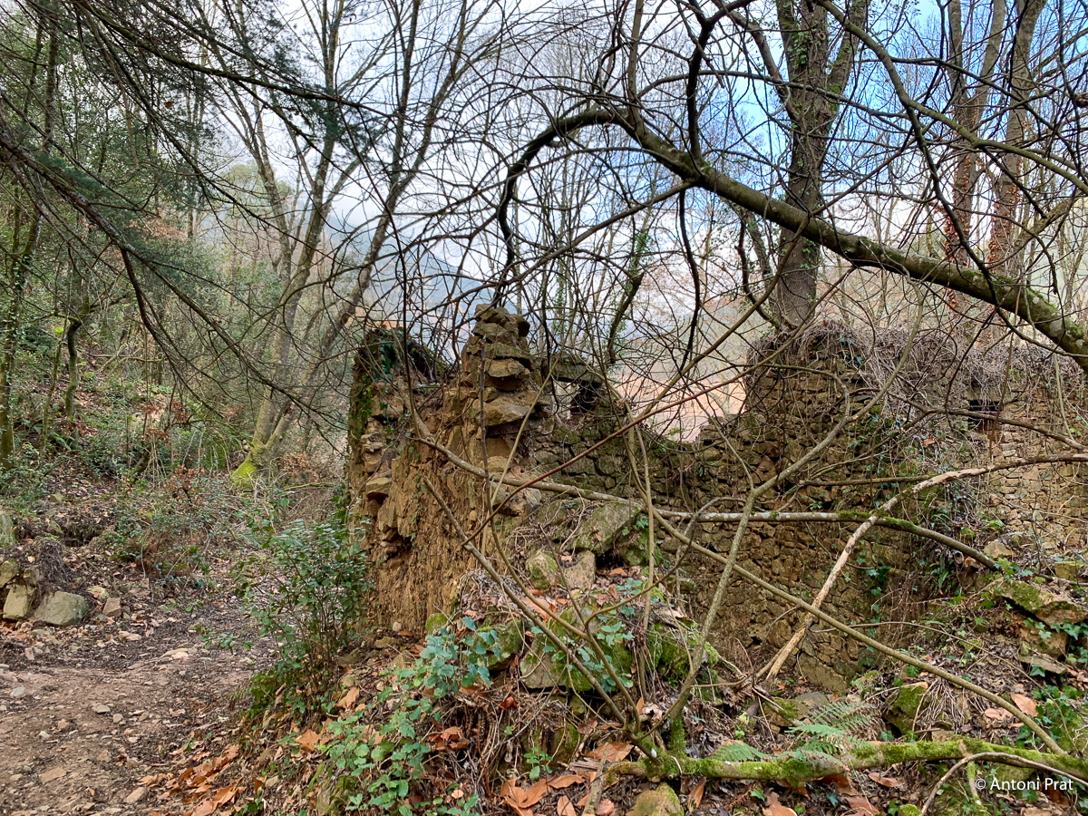 Situat a la dreta del Ter, vora el Baldà. Les restes de la casa es troben molt a prop de la cota màxima de les aigües, però mai arriben a quedar-ne afectades. Era un mas de grans dimensions format per dues ales perpendiculars, una de 15 x 11 m i l’altra de 21 x 5 m, que s’unien a l’extrem de ponent.