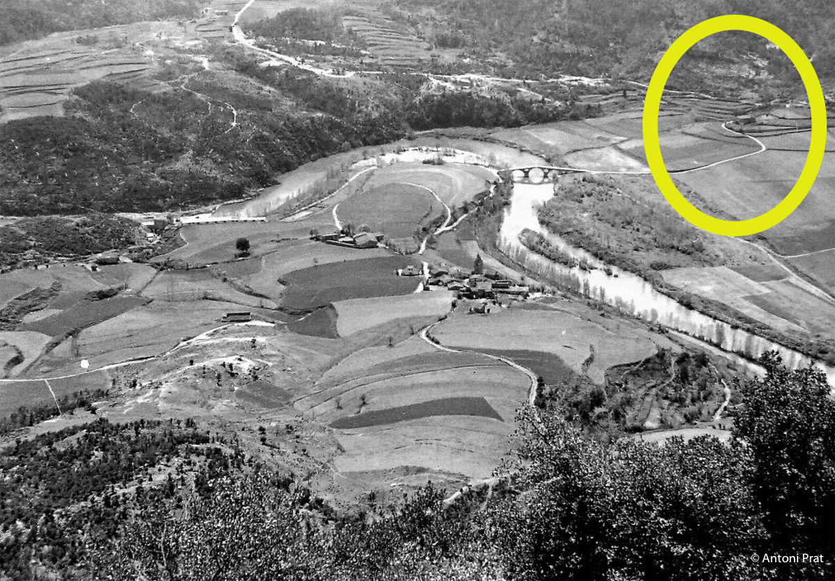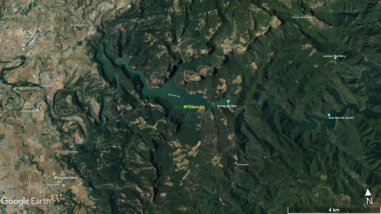 Es tracta de la darrera casa a la riba dreta del riu, ara pantà, abans d’arribar a la presa de Sau. Queda molt propera al pont de Sau, de cinc arcades i quatre pilastres, que resta sota les aigües.