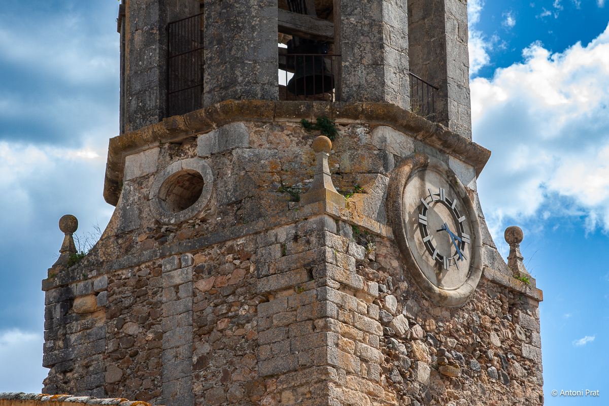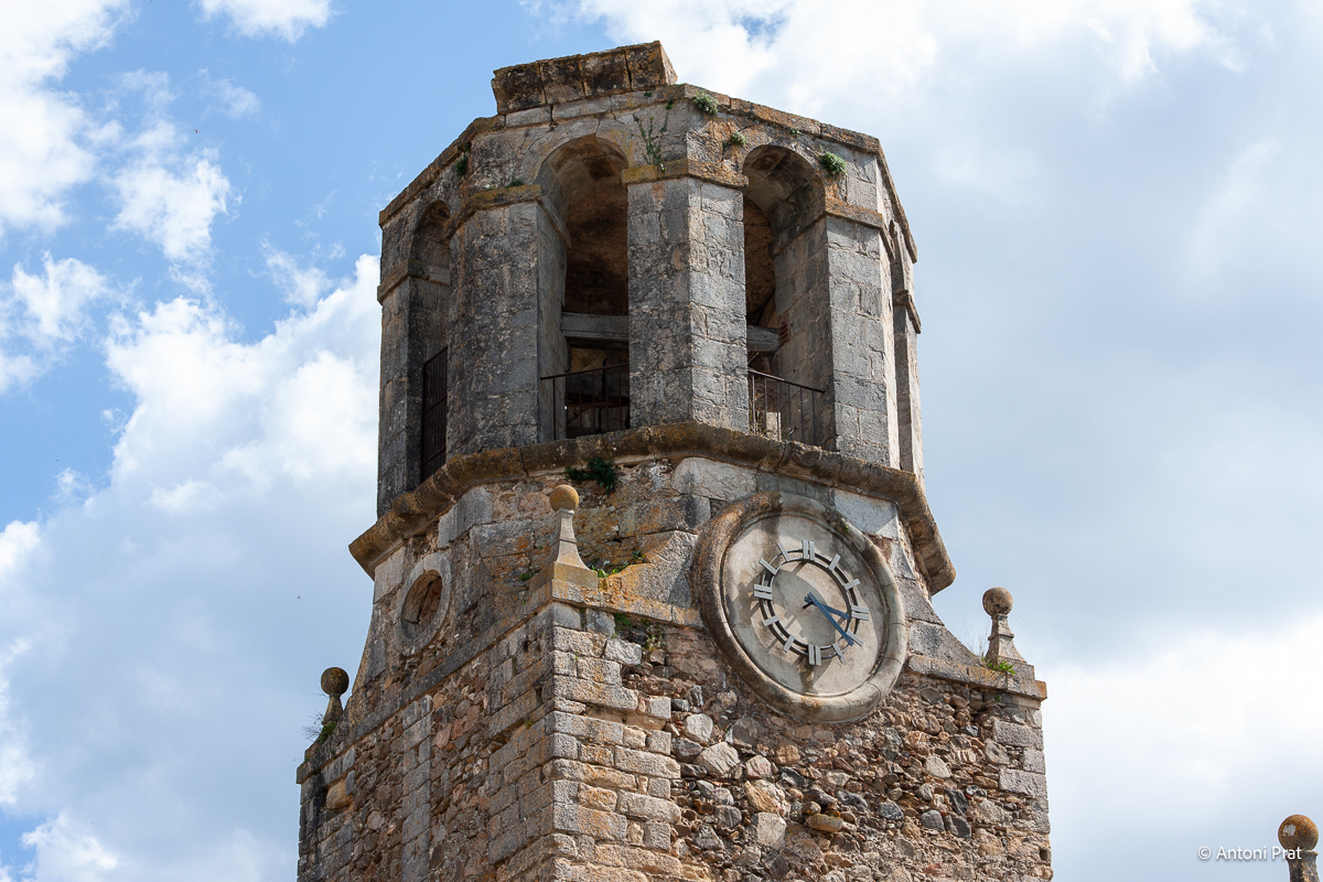 Un rellotge monumental, de construcció més recent, tapa una de les obertures circulars de la planta comunidor.
