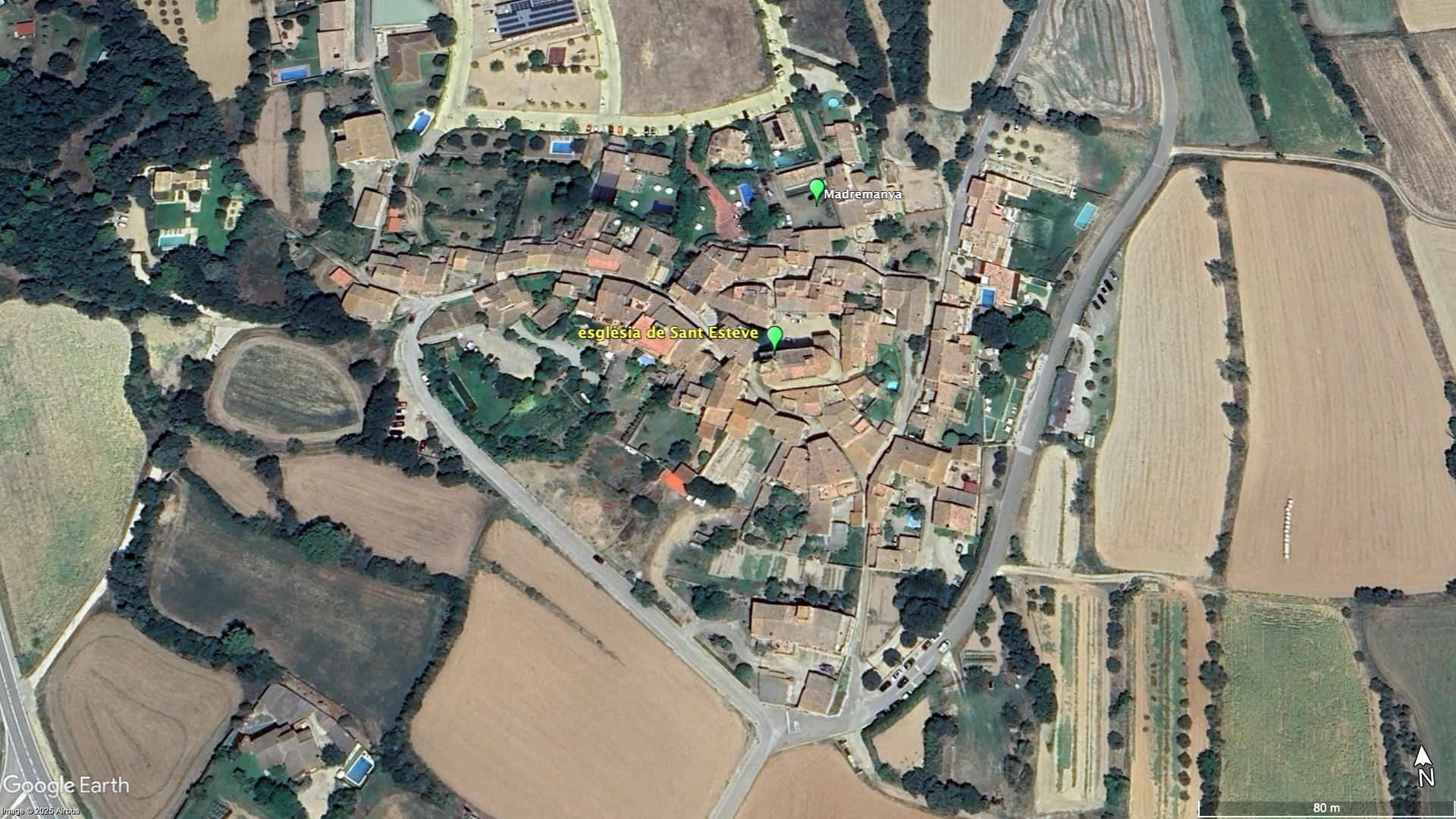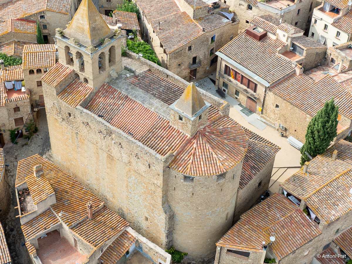 El comunidor de l’església de Sant Esteve, a Madremanya, està situat a la teulada, a sobre l’absis.