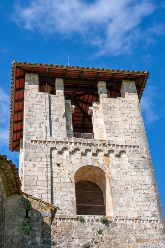 Aixecat sobre una planta amb teulada a quatre vessants, amb obertures d’alçades combinades per deixar un petit balcó al centre de cada cara i unes finestres més aixecades.
