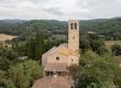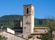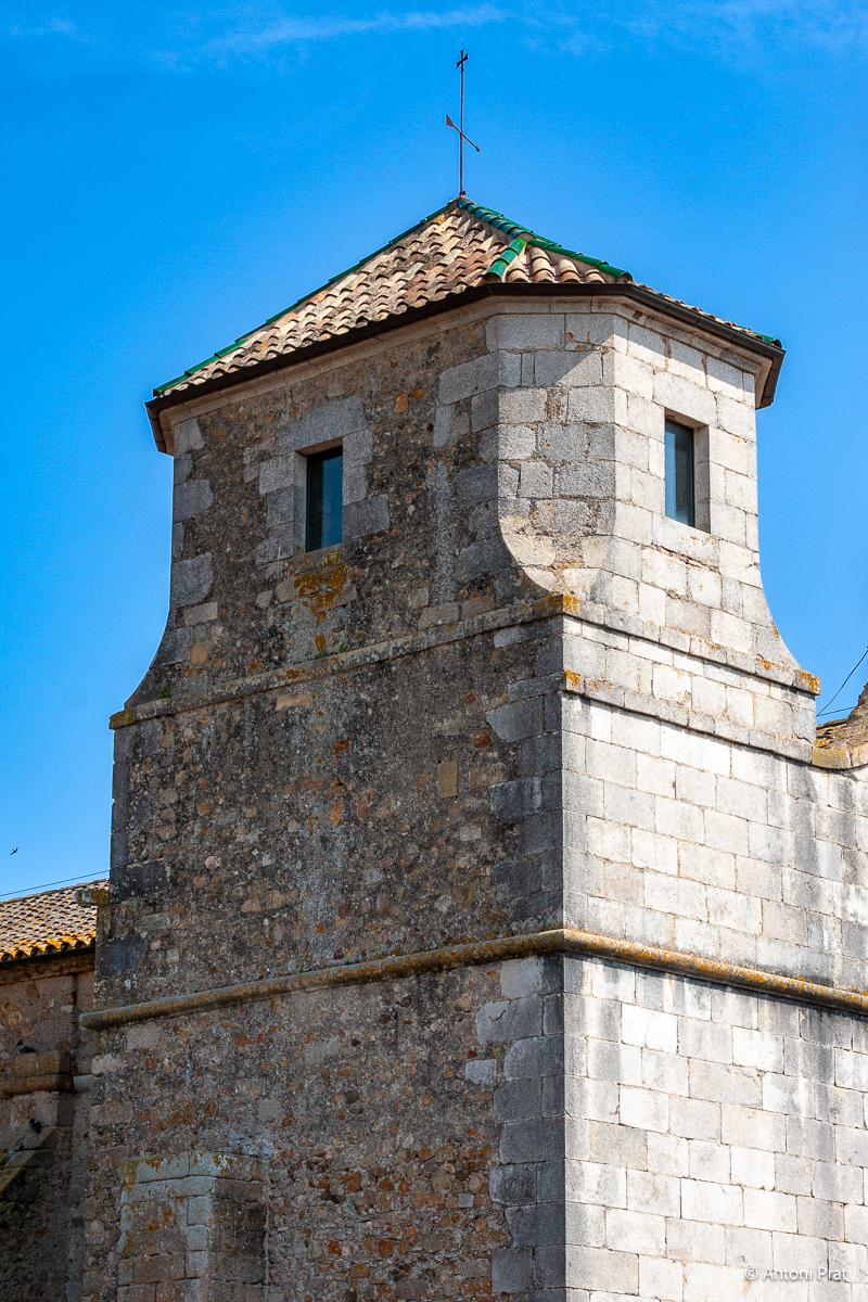 Es tracta d’una segona torre adossada a l’esquerra de la façana de l’església, lleugerament més alta, quadrada i arrencada des de la base. La seva silueta inconfusible és visible des de tota la contrada pel fet que el temple està situat al cap de munt del turó on s’arreplega el poble.