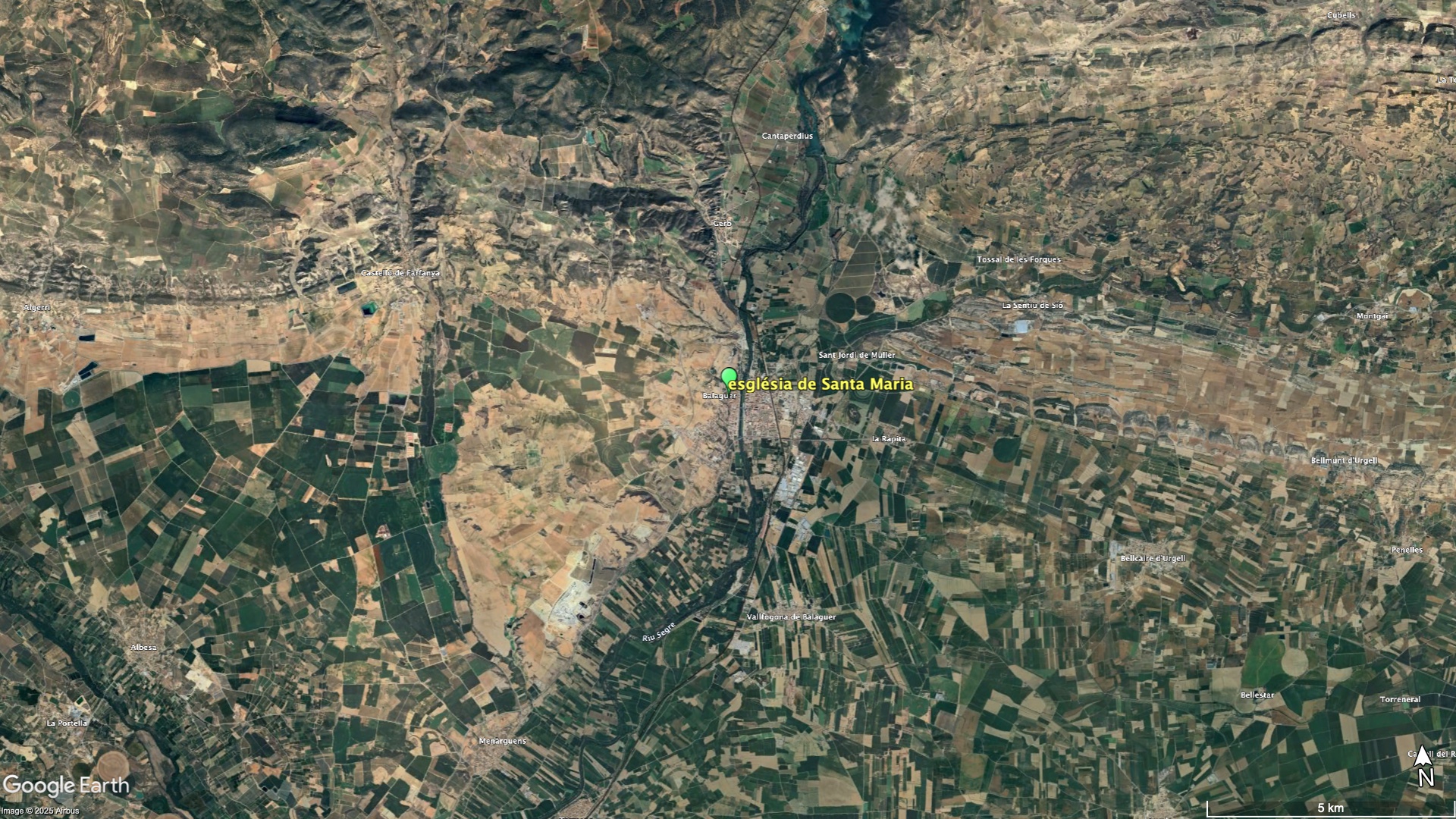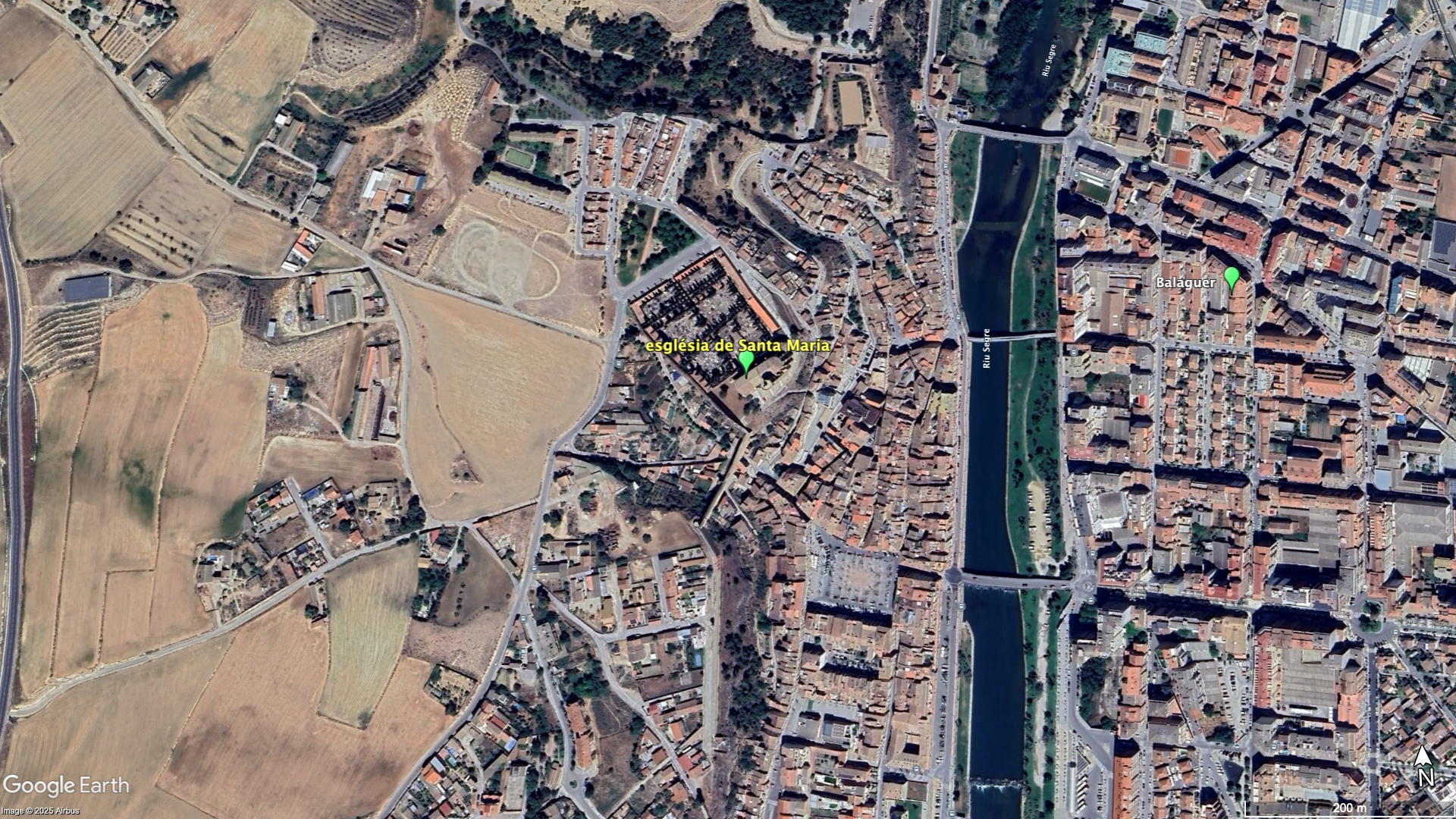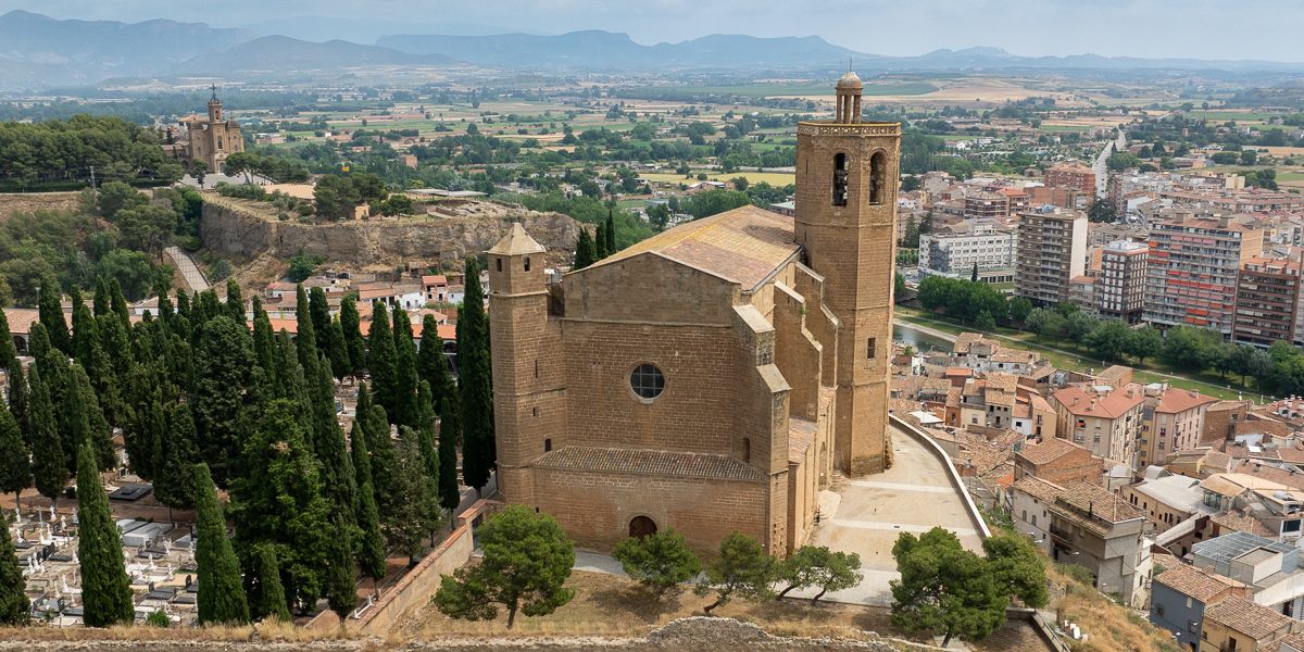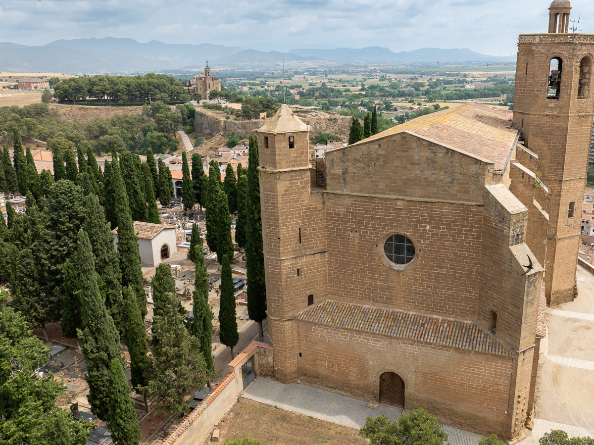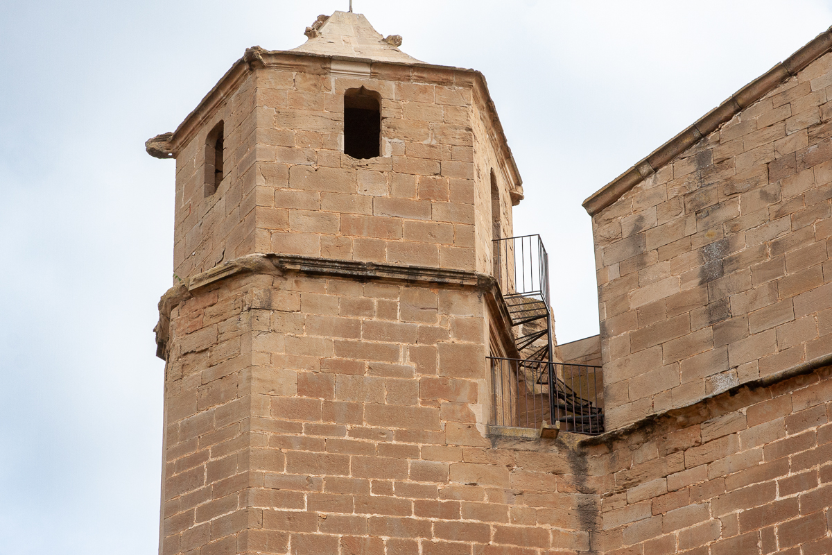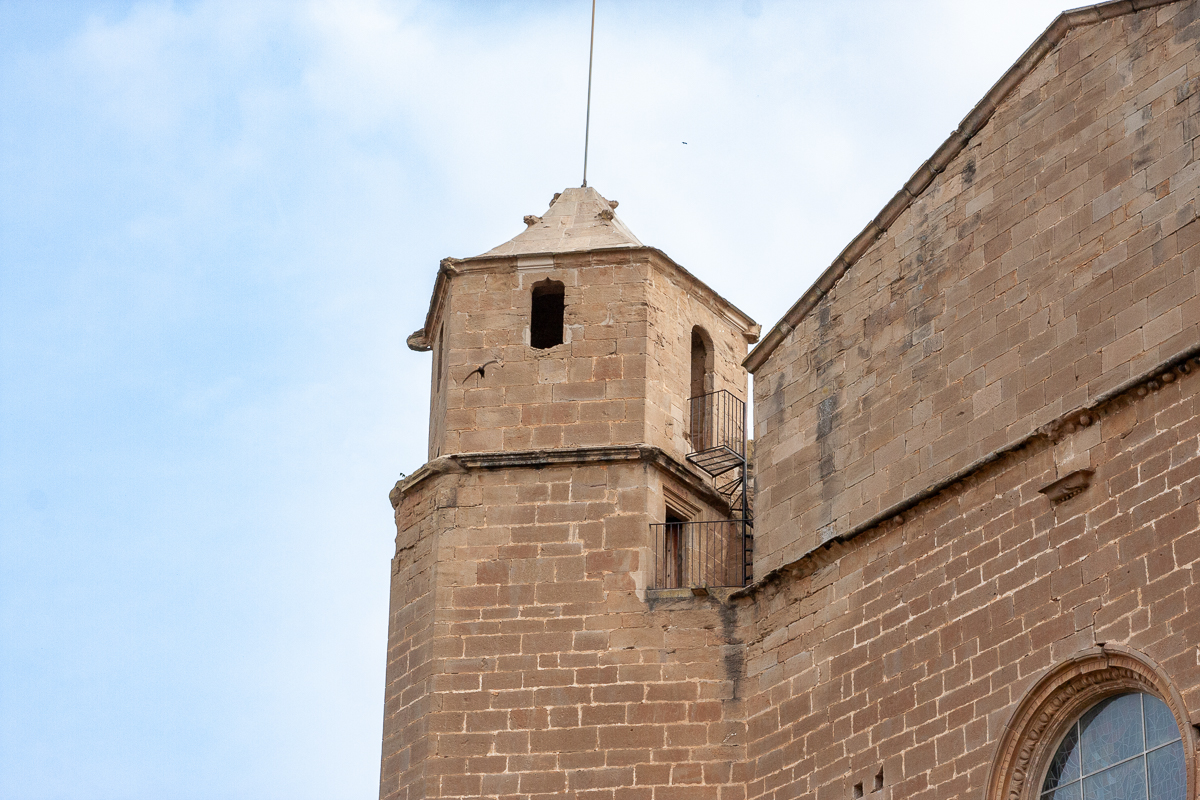 Comunidor de torre situat a la cara nord de la façana d’entrada a l’església de Santa Maria de Balaguer, a la comarca de la Noguera.