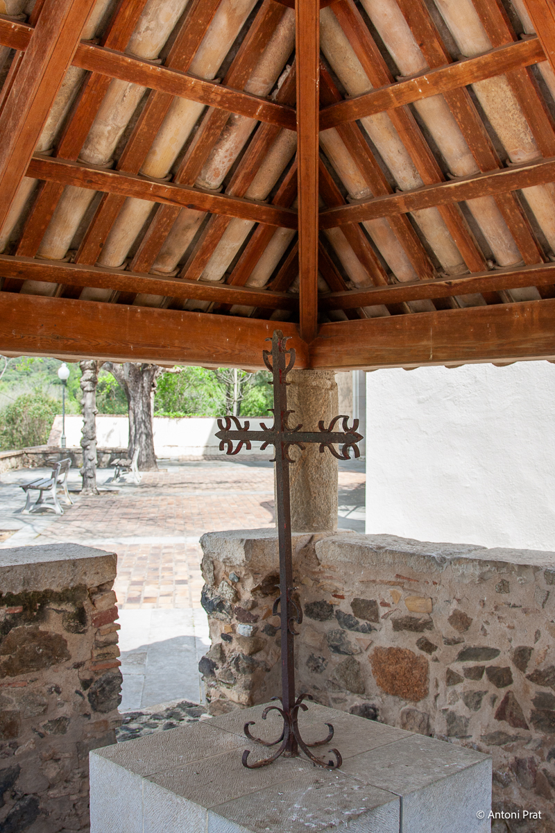 L’estructura presenta quatre columnes cilíndriques de pedra situades als angles, una de les quals amb base escalonada. Aquestes columnes sostenen un embigat de fusta que suporta una teulada de forma piramidal, coronada per una petita creu de ferro. A l’interior hi ha una peanya amb una altra creu, aquesta de ferro forjat.
