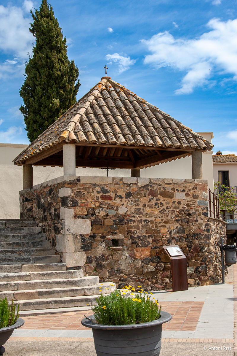 Comunidor exempt situat a la dreta de l’entrada de l’església de Sant Andreu d’Estanyol, al mateix replà elevat que l’edifici religiós.