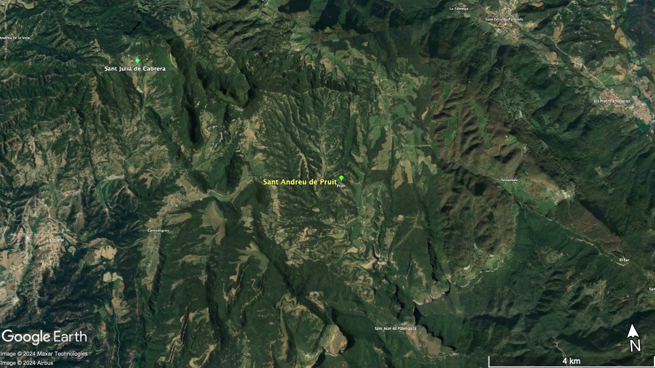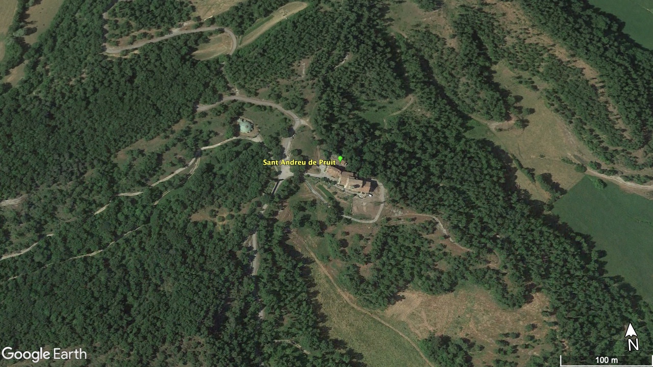 L’església de Sant Andreu de Pruit es trobava dins l’antic terme del castell de Fàbregues, i, després de la seva desmembració, fou inclosa en la demarcació del terme del castell de Rupit, i era situada al lloc de Pruit, del qual aviat degué ésser la parròquia, com encara és actualment.