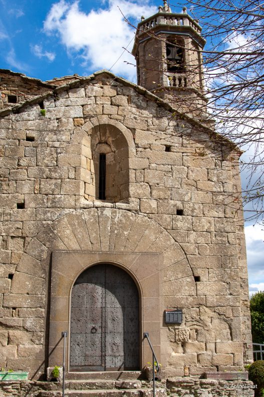 La porta, amb un arc de grans dovelles i mutilada, s’obre a la façana de ponent, juntament amb una esvelta finestra en forma d’espitllera, de doble esqueixada, amb un arc de mig punt.