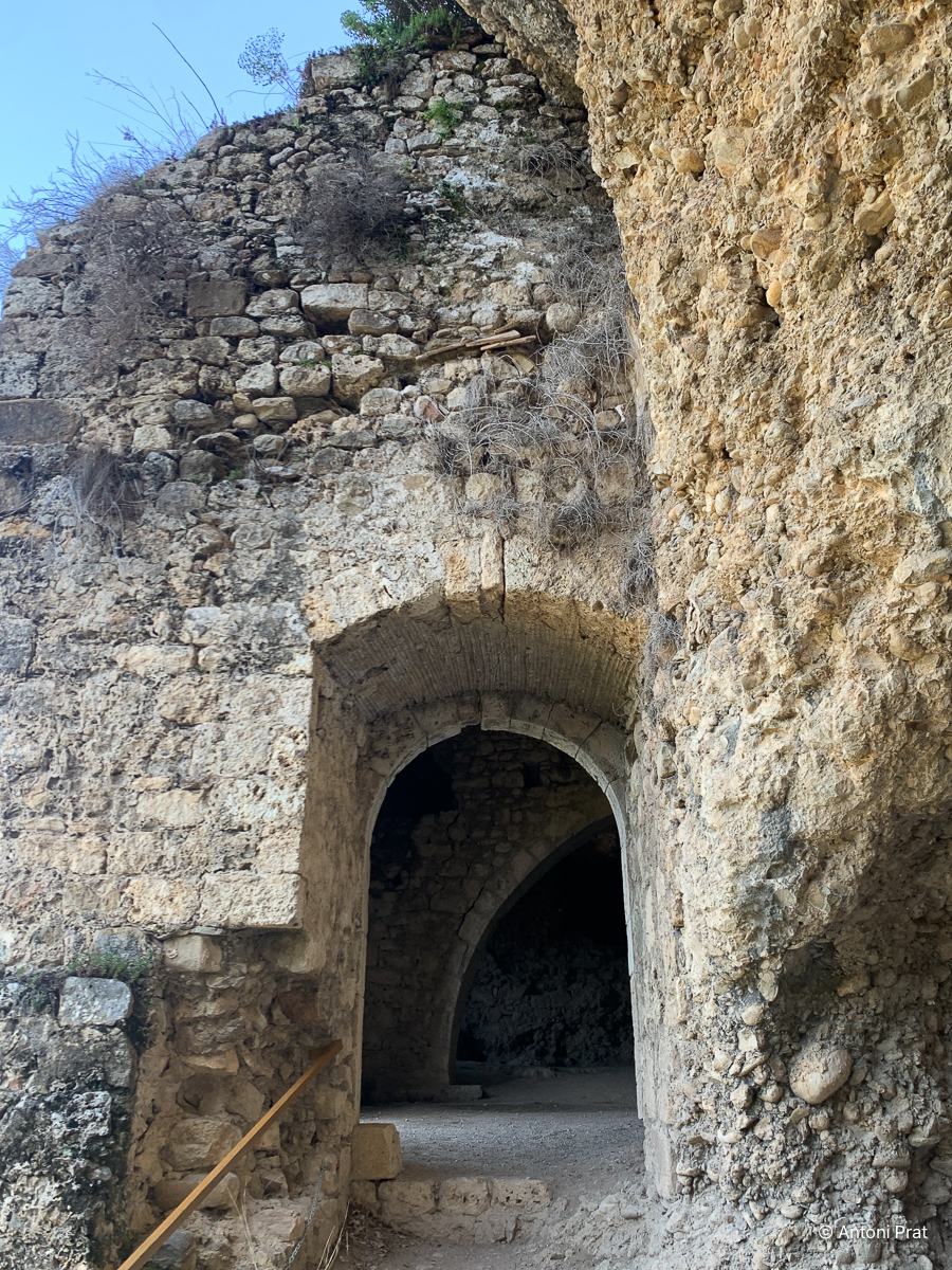 Dins es conserva una cisterna que amb un ben estructurat sistema de canonades recollia l’aigua de pluja de la coberta i de la penya superior.