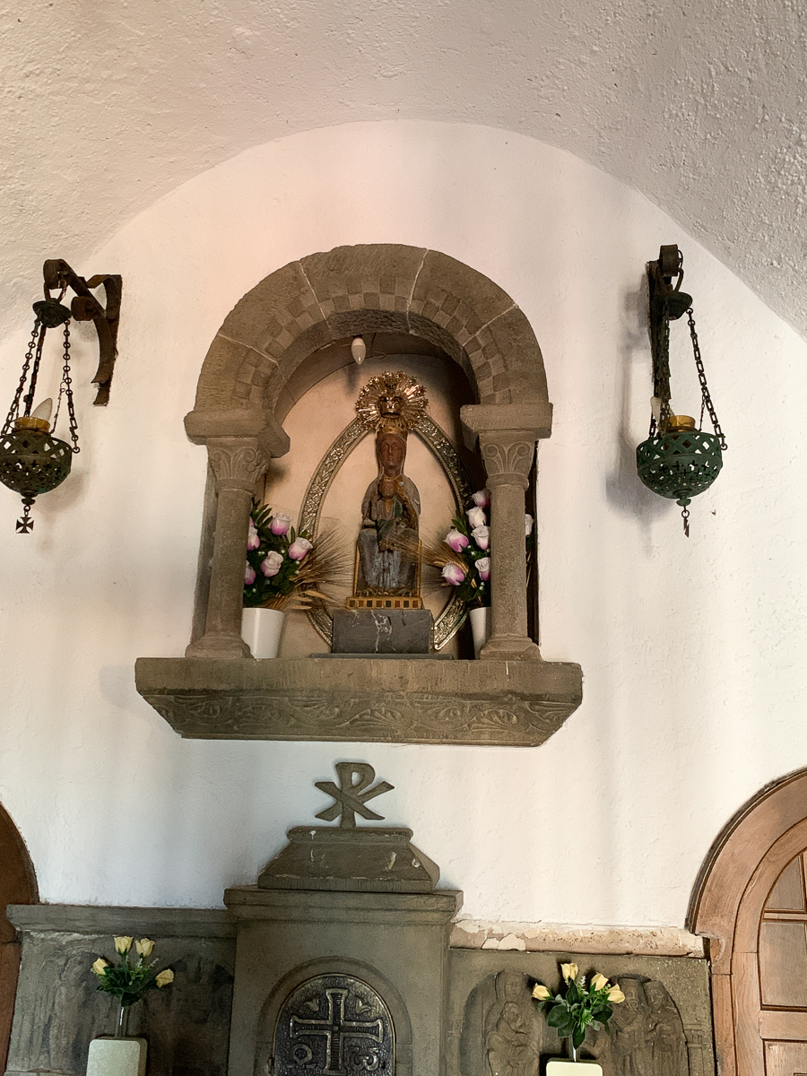 Les primeres notícies del culte a la Mare de Déu de Montgrony són del 1400, època en què tenia un petit edifici a l’indret actual. La capella, per la seva atrevida i curiosa situació, és de petites dimensions, així i tot té cor. L’altar és presidit per l’actual imatge de la Mare de Déu de Montgrony.