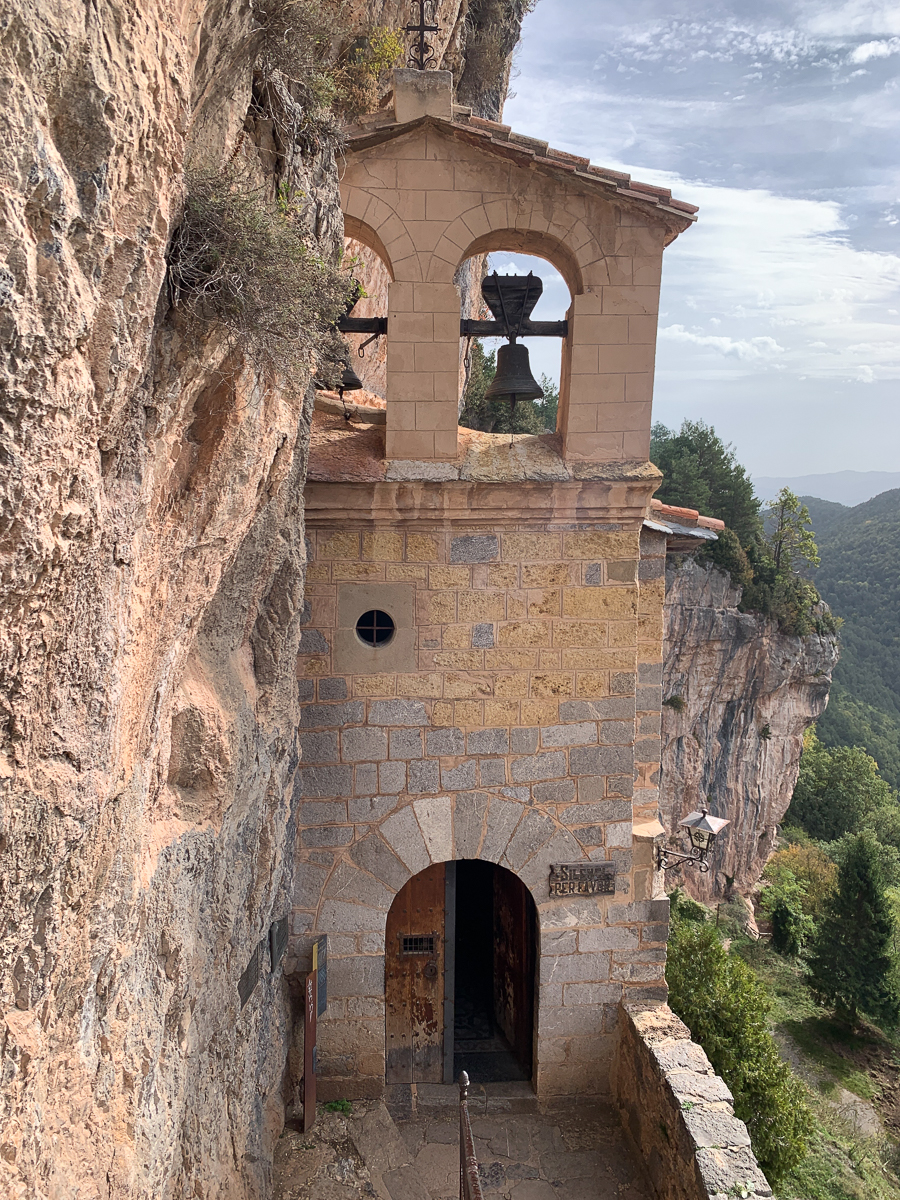 El santuari de Santa Maria de Montgrony es troba en el cingle de la Serra de Sant Pere, en el municipi de Gombrèn.