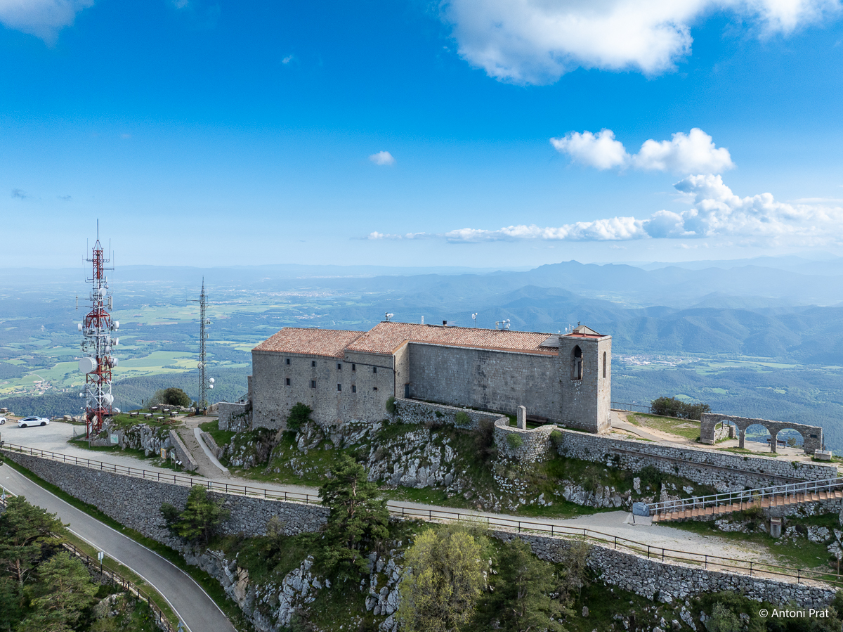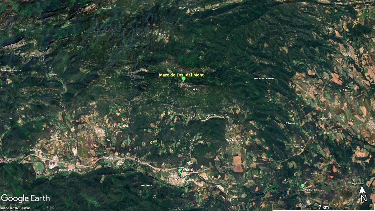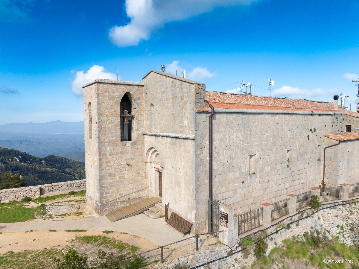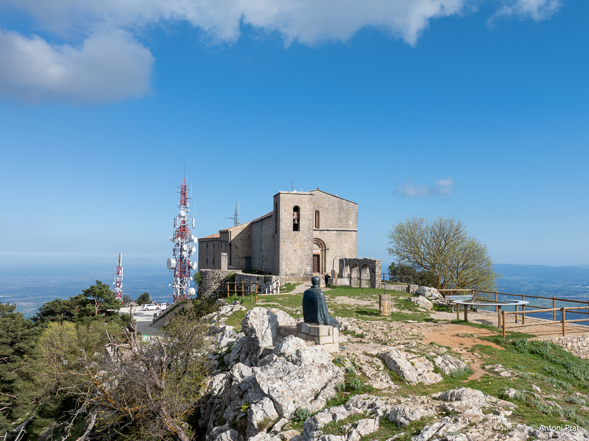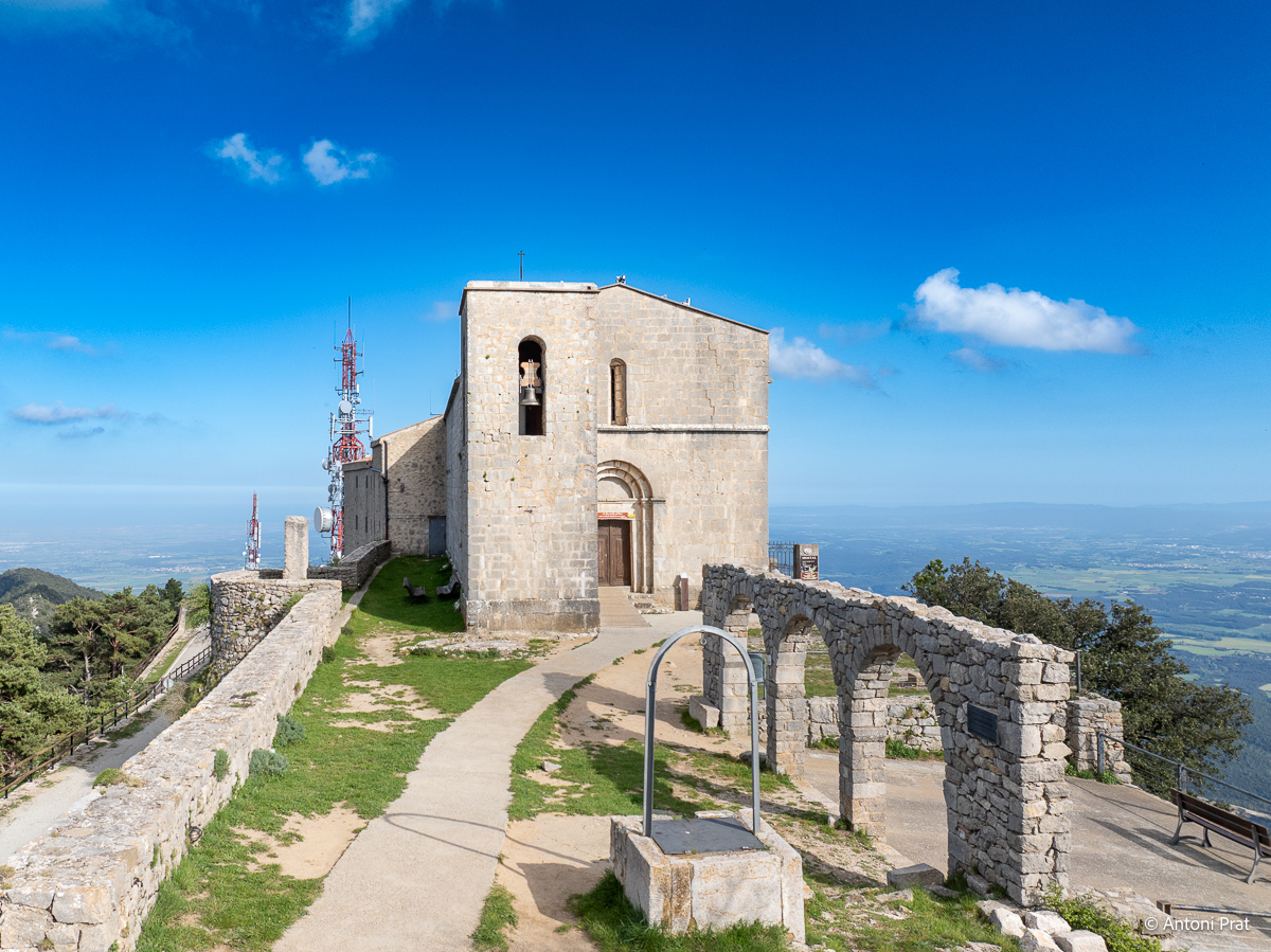 Situat al cim de la muntanya del Mont (1.124 m), dins el terme municipal d’Albanyà (Alt Empordà), el santuari ofereix unes vistes panoràmiques impressionants sobre l’Empordà, la Garrotxa i els Pirineus.