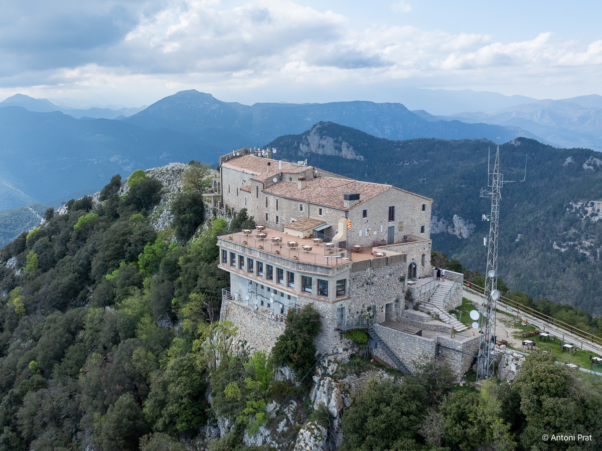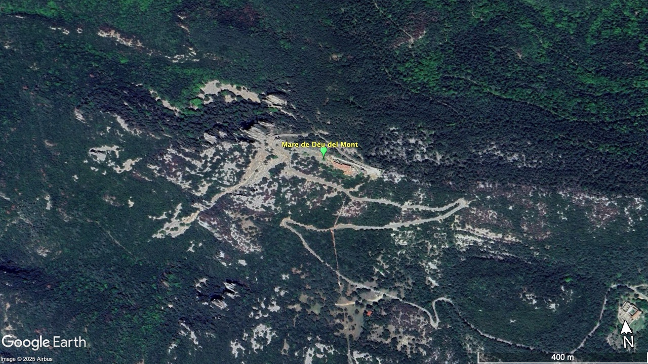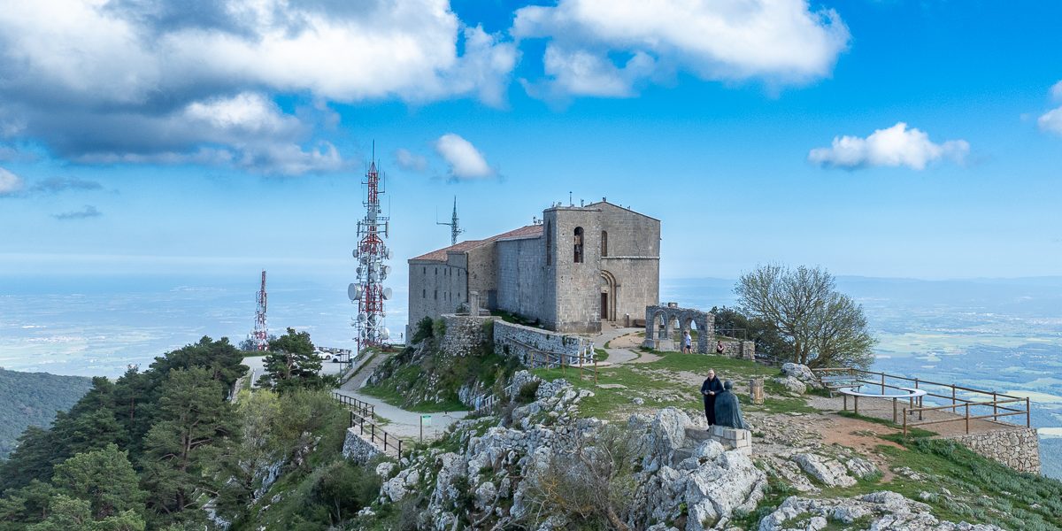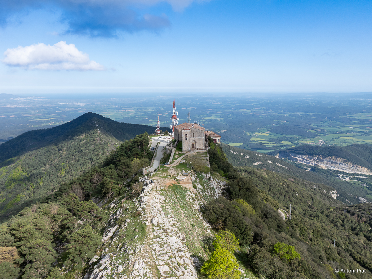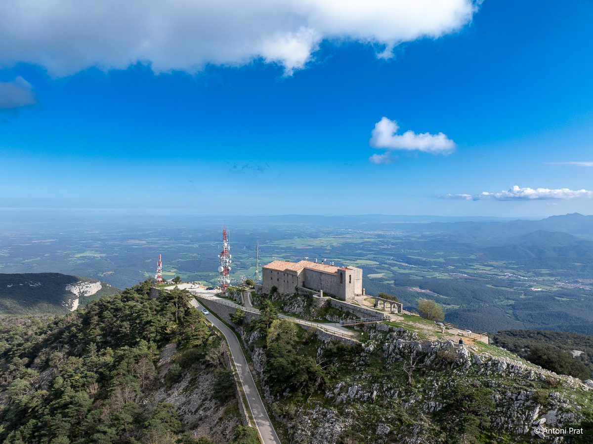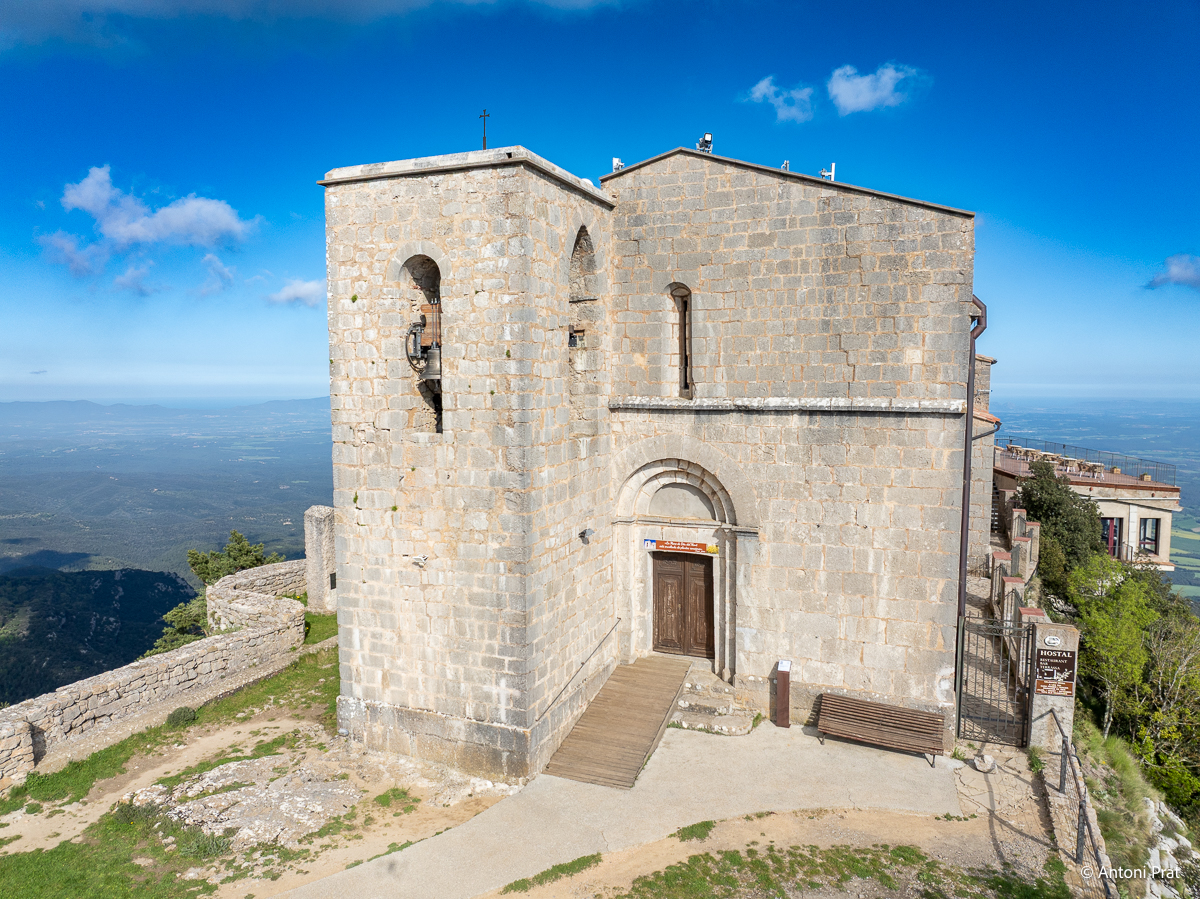 Situat al cim de la muntanya del Mont (1.124 m), dins el terme municipal d’Albanyà (Alt Empordà), el santuari ofereix unes vistes panoràmiques impressionants sobre l’Empordà, la Garrotxa i els Pirineus.