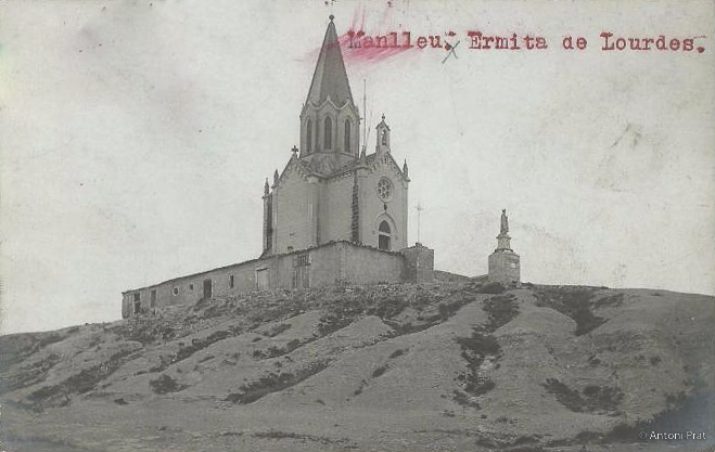 El temple va ser projectat per l’arquitecte August Font Carreras, recordant la silueta de la basílica francesa de Lourdes, i el 18 de febrer de 1886, en un plujós dia d’hivern, va ser beneït per Josep Morgades i Gil, bisbe de Vic, qui també va tenir una gran col·laboració en el projecte.