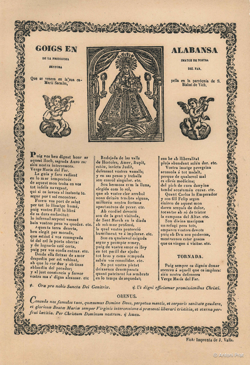 En són una bona colla els goigs a la Mare de Déu del Far que podem trobar editats.