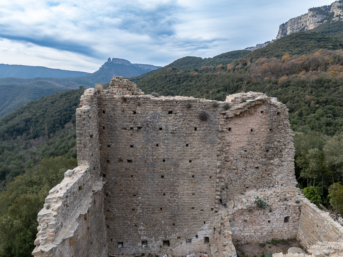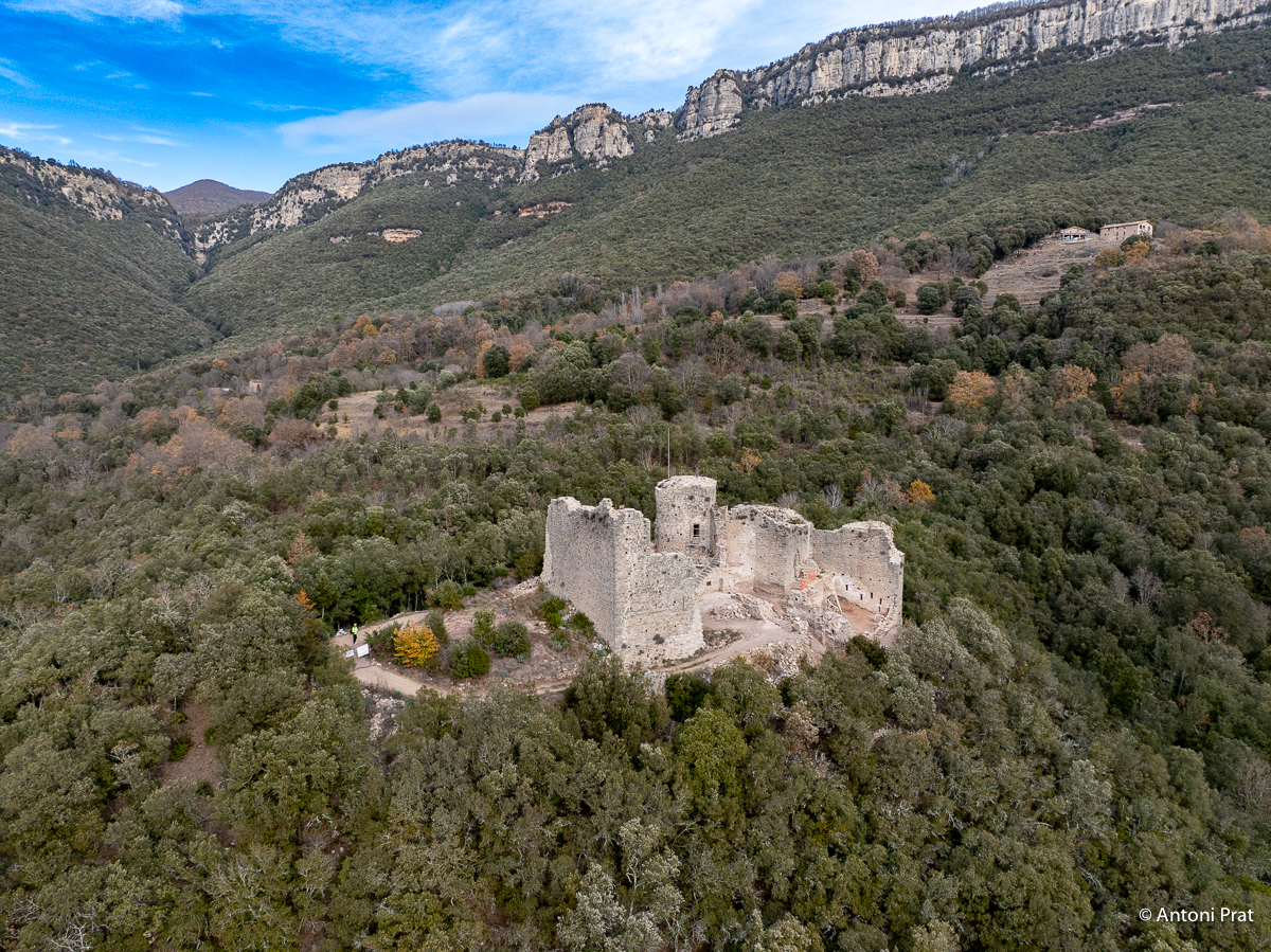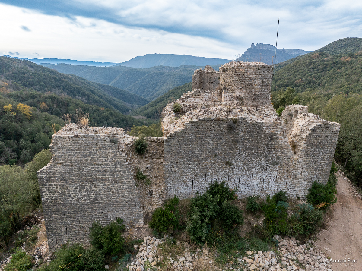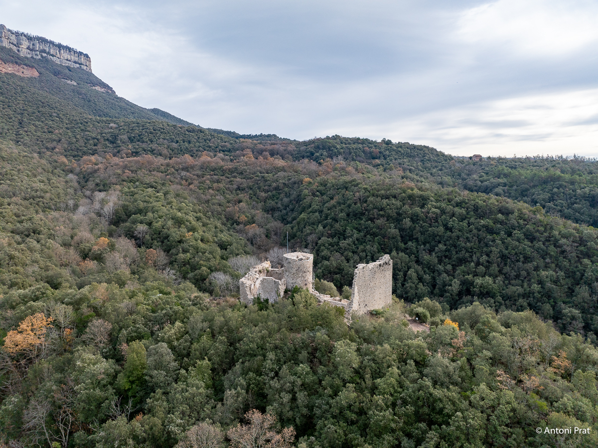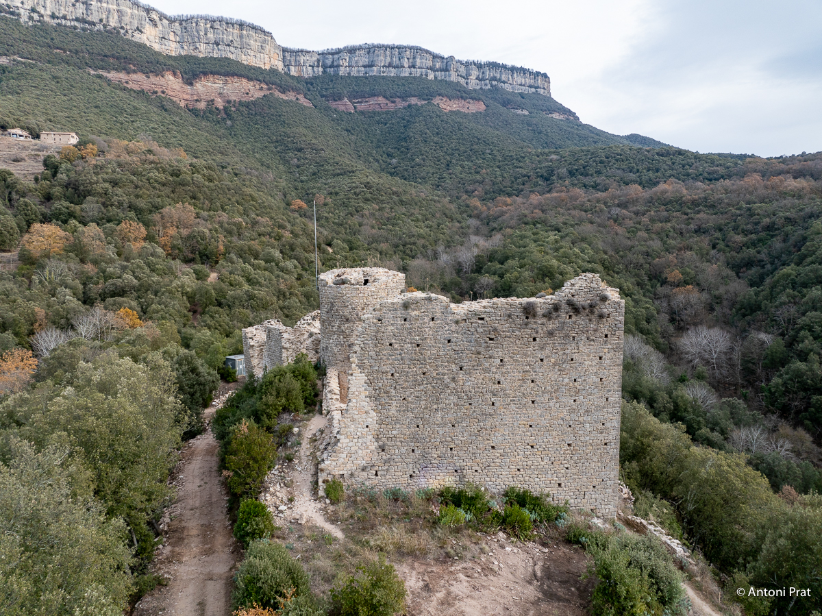 El castell era propietat dels vescomtes de Cardona, al segle XIV passà als comtes de Pallars Sobirà i l’any 1369 Gilabert de Cruïlles i de Mallorca n’adquirí els drets juntament amb el terme del castell de Rupit.