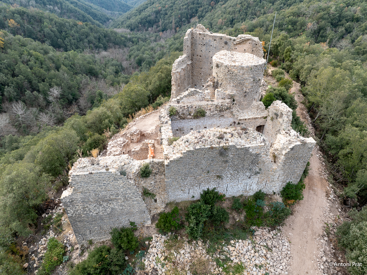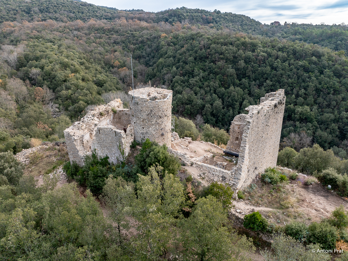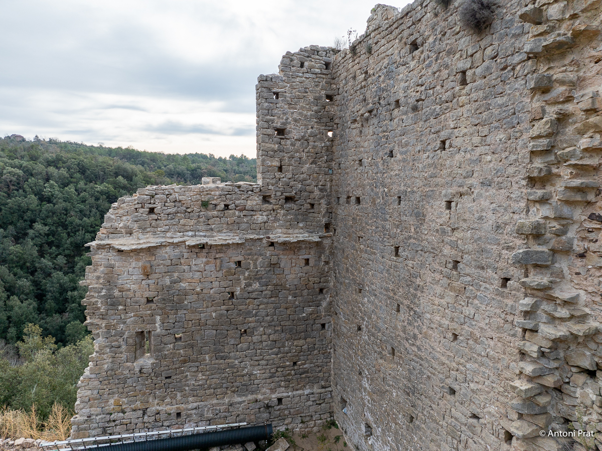 Aquest s’articula al voltant d’una torre mestra, possiblement edificada al segle XI, envoltada de muralles espitllerades, passos de ronda, un possible fossat al sector nord i estances probablement bastides als segles XII i XIII, de les quals encara resten parts importants. A la sala situada al nord de la torre mestra es conserven les arrencades d’una volta construïda amb carreus de travertí.