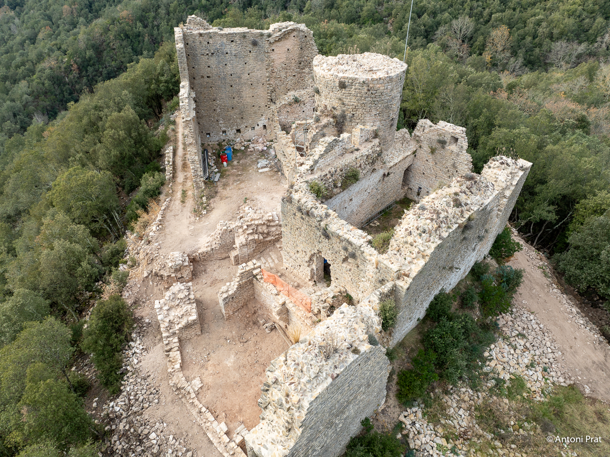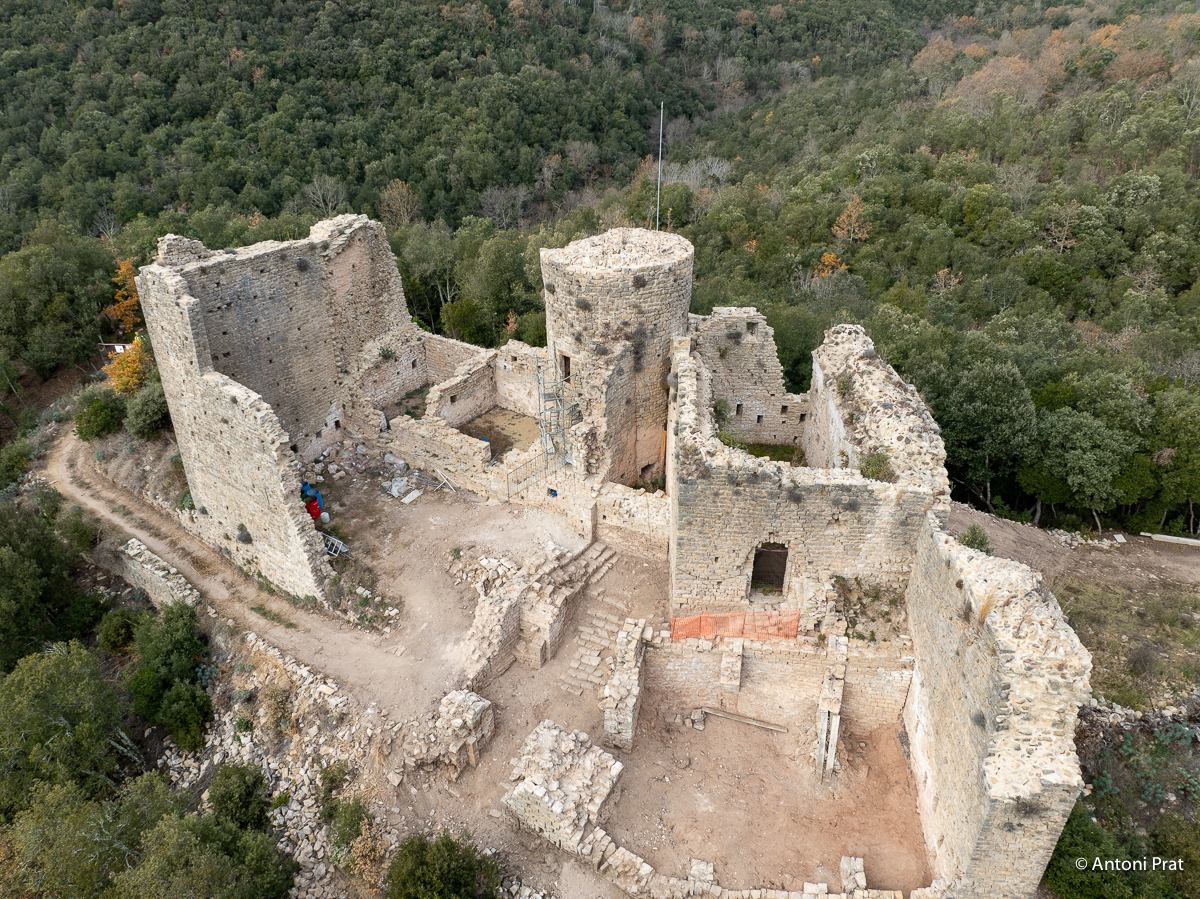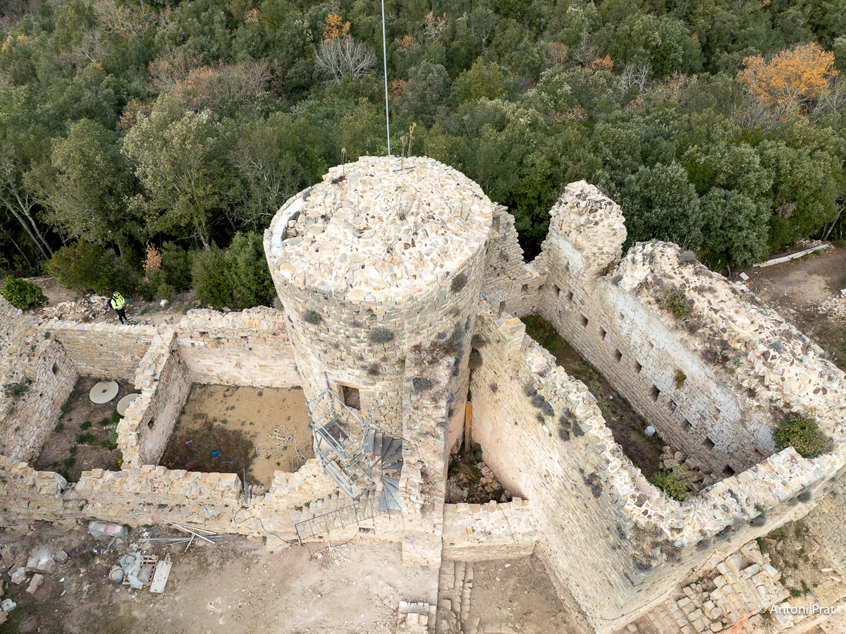 Aquest s’articula al voltant d’una torre mestra, possiblement edificada al segle XI, envoltada de muralles espitllerades, passos de ronda, un possible fossat al sector nord i estances probablement bastides als segles XII i XIII, de les quals encara resten parts importants. A la sala situada al nord de la torre mestra es conserven les arrencades d’una volta construïda amb carreus de travertí.