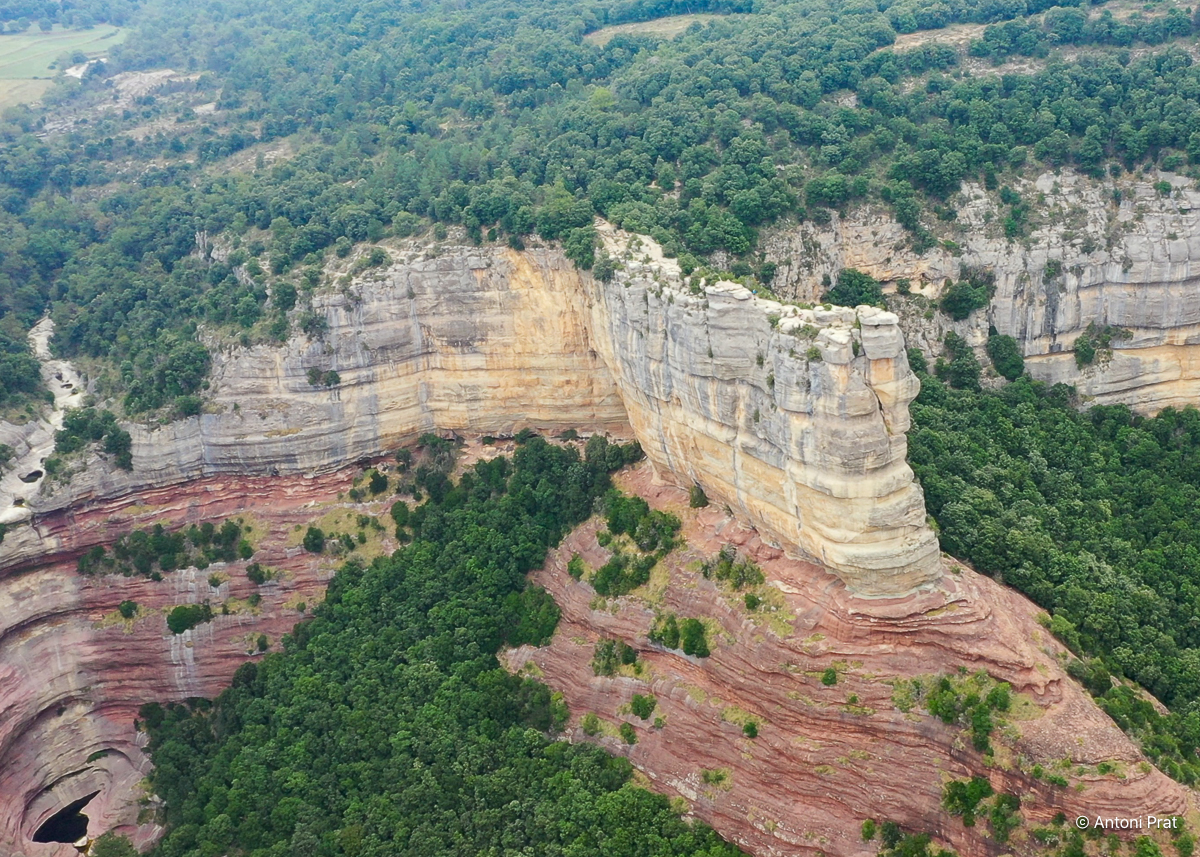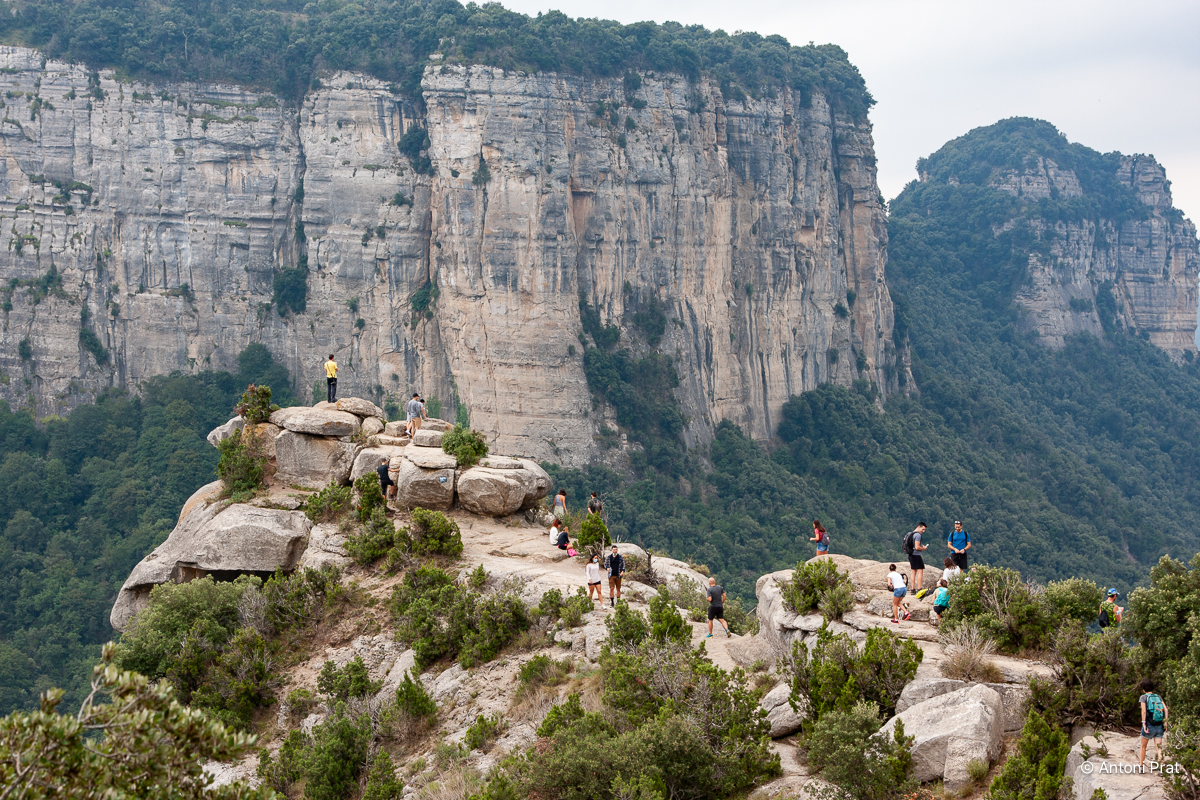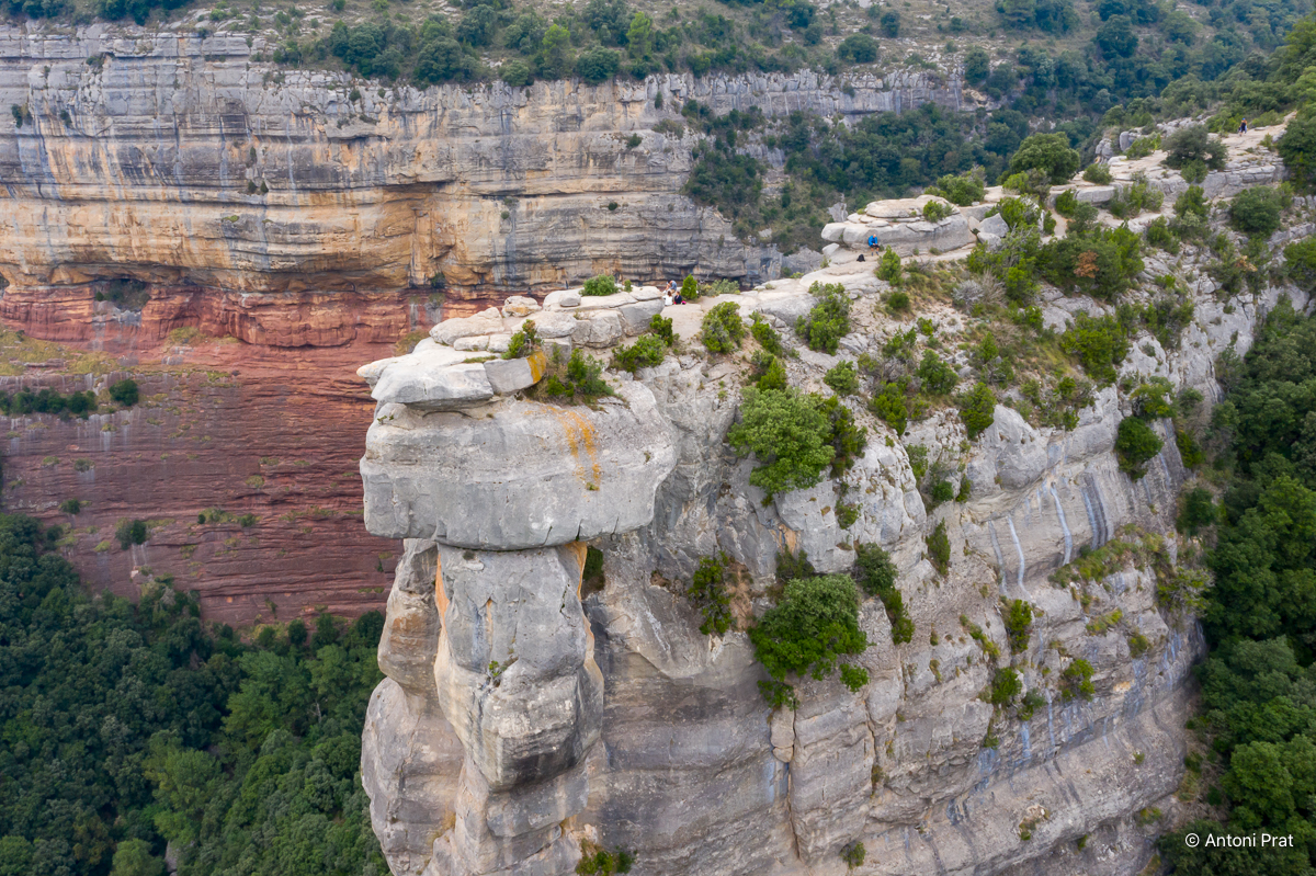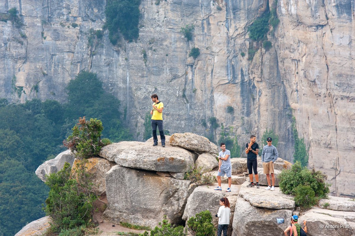 Des de la seva talaia es pot disfrutar de la vista del salt de Tirabous. Si, a més, tenim la sort que el torrent del Noguer porta aigua, l’espectacle de natura és d’una bellesa sublim.